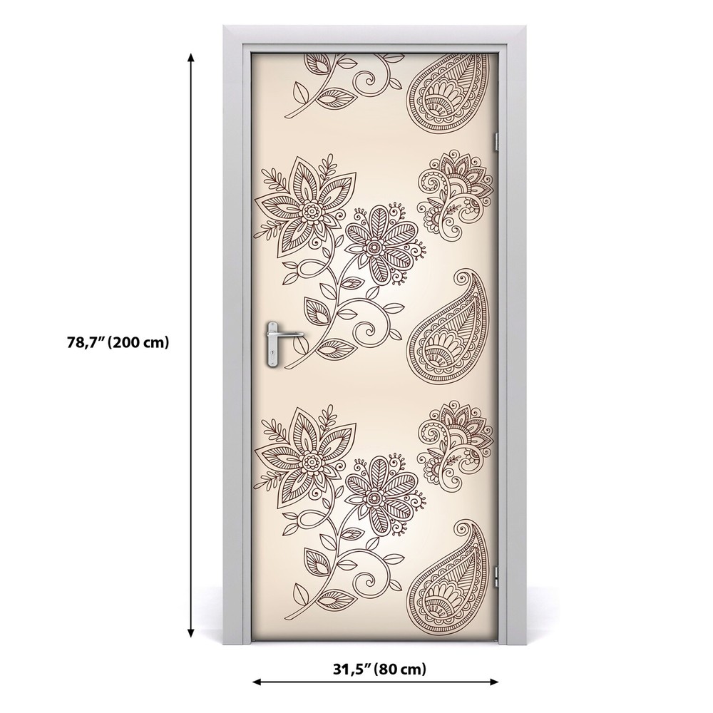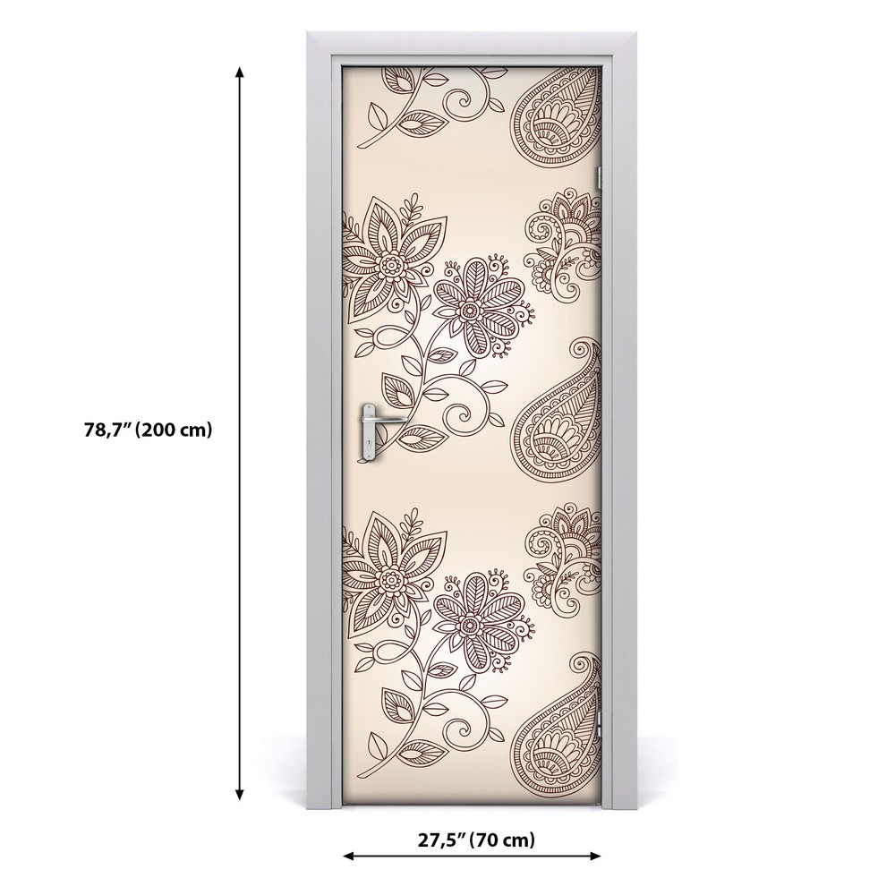 Floral Herringbone Green Leaves and Pink Flowers Adhesive Door Sticker