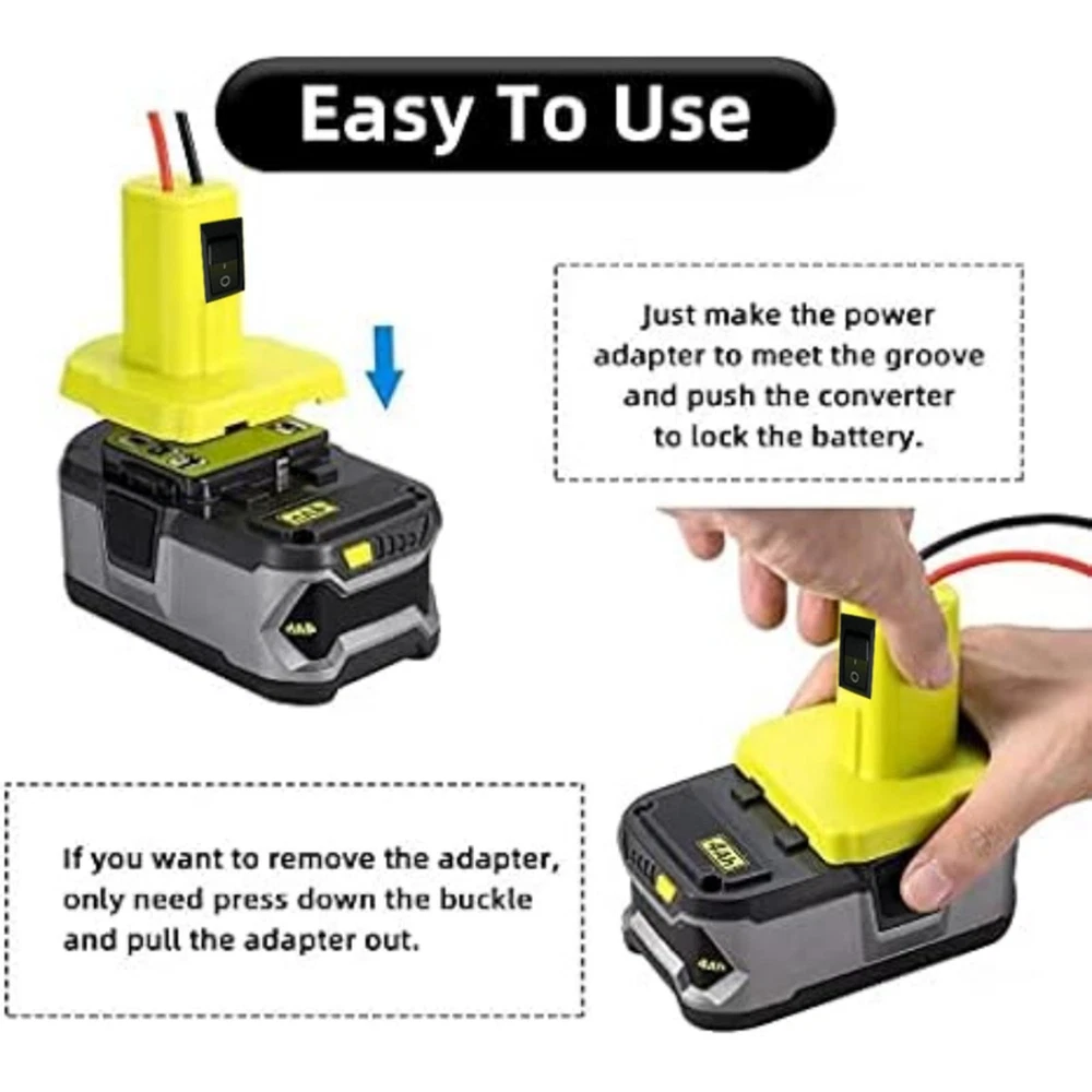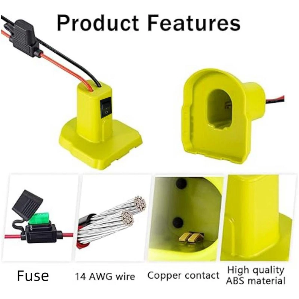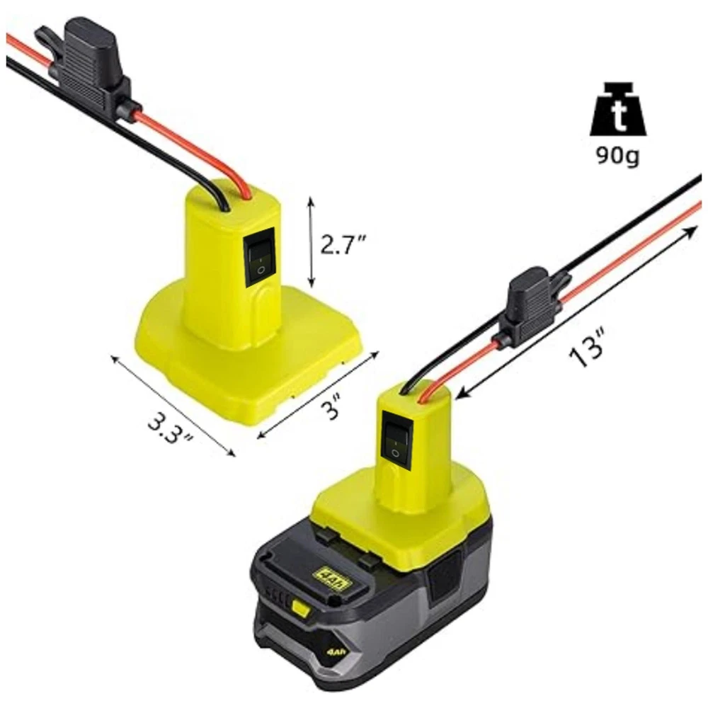 Product Description Features: Better security: The adapter is equipped with a fuse and high-quality silicone copper wire to prevent excessive transient current from damaging the battery and equipment. You can use it safely Perfectly compatible: work with for Ryobi 18V Li-ion & Ni-Cd Battery. Easy to install, locks on you battery very well. Easy to DIY operate: The adapter is equipped with wiring terminals, which is convenient for you to connect the power cord of the device with the power cord of the adapter faster and better. Multi-scene use: Power wheels adapter has 14 gauge wire installed; You can use it to upgrade your power wheels, for Rc toys, Robotics DIY etc. This adapter will surely allow you to quickly and safely upgrade your power wheel and enjoy the beauty of DIY. Specifications: Product name: Power Wheels Adapter for Ryobi 18V Li-ion & Ni-Cd Battery Compatible with: for Ryobi 18V Li-ion & Ni-Cd Battery Color: Green Package includes: 1 x Battery Connector(There is a fuse inside the adapter) 2 x Replacement Fuses(30A) 1 x Quick Connect terminal (Battery Not Included) Shipping Returns Contact Us Payment 1. Items sent from US warehouse. 2. Receiving time = Processing time + Shipping time. 3. Pro cessing Time: Around 1-2 business Days. 4. Shipping Time: 3-5 business day. it may have a little delay during some holiday (such as Christmas), any problem, please feel free to contact. 1. 30 days warranty from the purchased date. Please contact us via email before returning the defective item. 2. Our warranty does not extended to any product that are physically damaged or that are not under normal operating conditions as result of misuse or improper installation on the buyer/user's part. 3. Return items should include the original packaging and all accessories. buyers MUST contact us for the returning address. 4. In all cases, buyers pay shipping fees at their own cost to return products for exchange or refund. We will be responsible for the postage of replacements. Refund will be made upon receipt of the returned item. If you have any question, please e-mail us immediately, we will reply you as quickly as possible. We care about our valued customers, and will always try to help you. We accept all verified payment from eBay. Shipping 1. Items sent from US warehouse. 2. Receiving time = Processing time + Shipping time. 3. Pro cessing Time: Around 1-2 business Days. 4. Shipping Time: 3-5 business day. it may have a little delay during some holiday (such as Christmas), any problem, please feel free to contact. Returns 1. 30 days warranty from the purchased date. Please contact us via email before returning the defective item. 2. Our warranty does not extended to any product that are physically damaged or that are not under normal operating conditions as result of misuse or improper installation on the buyer/user's part. 3. Return items should include the original packaging and all accessories. buyers MUST contact us for the returning address. 4. In all cases, buyers pay shipping fees at their own cost to return products for exchange or refund. We will be responsible for the postage of replacements. Refund will be made upon receipt of the returned item. Contact Us If you have any question, please e-mail us immediately, we will reply you as quickly as possible. We care about our valued customers, and will always try to help you. Payment We accept all verified payment from eBay. You may also like 18 Grids Watch Tiny Parts Storage Box Plastic Repair Acc Container + Dust Cover 11.75 USD Leather Cushion Face Cover Eye Foam Mask Pad Anti-Sweat For Oculus Quest 2 VR 15.94 USD Soft Rubber Dust Blower Air Pump Cleaner Watch & Camera PCB Repair Cleaning Tool 3.78 USD 3.99 USD 3 Hands 2813 Automatic Mechanical Watch Movement Watch Repairing Parts 18.08 USD 3.99 USD 1 PC LED Magnetron Switch Light Wireless Lighting Module For Gundam Model 6.91 USD 3.99 USD 28PCS Sports for Footjoy Replacement Golf Shoes Spikes Pin Soft Fast Twist Studs 11.08 USD 3.99 USD powered by
