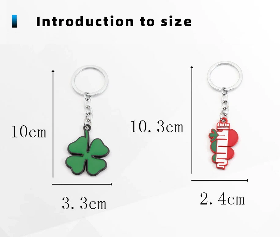 Car Keychain Green Four Leaf Clover Keyring Key Chain Ring Holder for Alfa Romeo 147 156 164 166 159 GT Giulia Giulietta Stelvio Mito Quadrifoglio Sportiva Ford Lucky Pendant Car Styling Description : 100% Brand new and high quality. Exquisite design,transmit the endless fun in you life. Simple but outstanding car logo modelling. Can be a unique style pendant for your key . A great gift for yourself and your relatives and friends. Features : Material:Metal Logo: for Alfa Romeo Keychain Size : 10.3*2.4cm Package include : 1Pcs Keychain