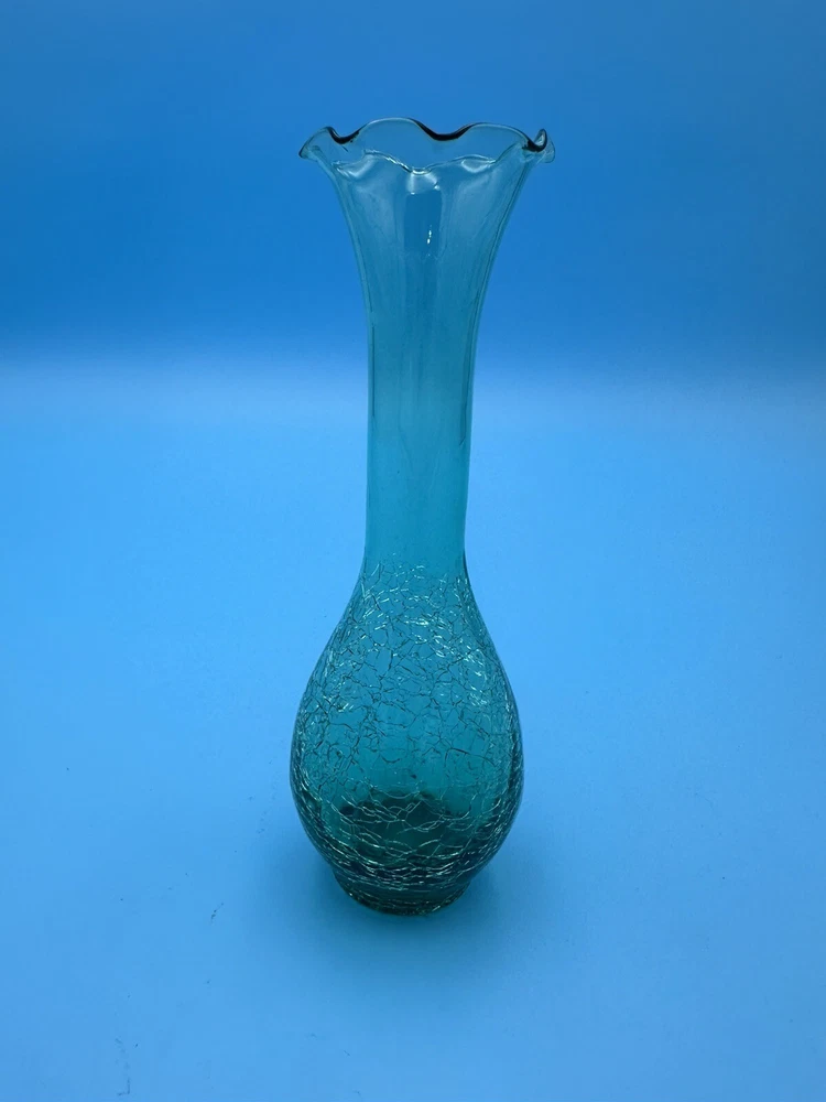Green Crackle Glass Vase With Ruffled Edge