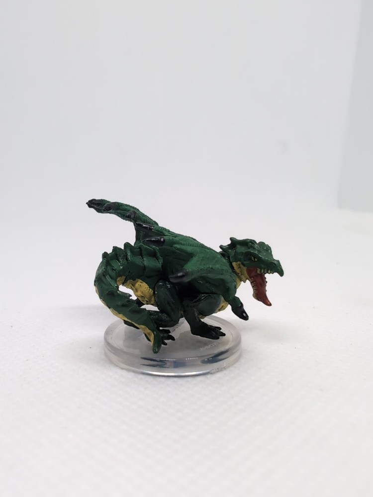 The Green Dragon Wyrmling miniature is part of Fizban's Treasury of Dragons #20 in the Dungeons and Dragons iconic series by Wizards of the Coast. Released in 2022, this painted figure is a valuable addition to any collector's shelf. This detailed miniature brings the mythical creature to life, perfect for adding character to tabletop battles and enhancing the overall gaming experience.