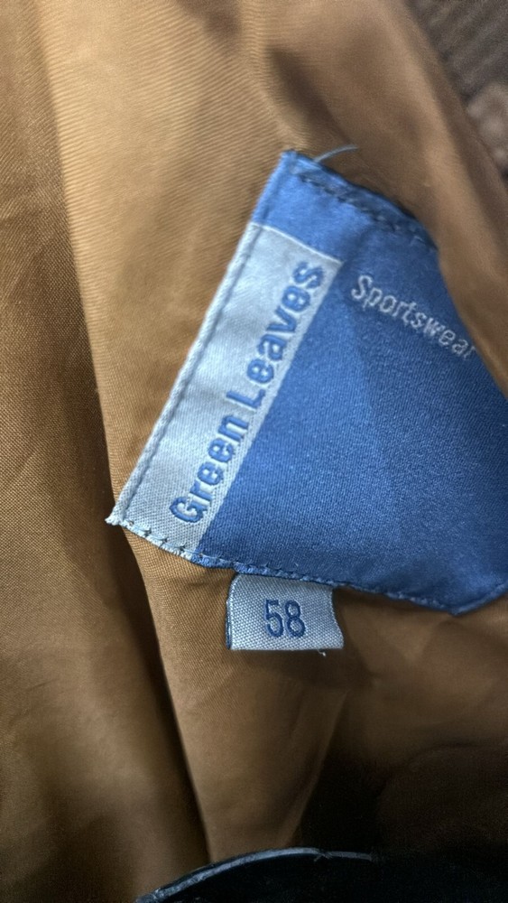 Type:JacketClosure:ZipperVintage:Yesgtin13:Does not applySize:58UPC:Does not applyDepartment:manColor:BrownOuter Shell Material:Leather/ReindeerSize Type:RegularStyle:JacketBrand:Green Leaves