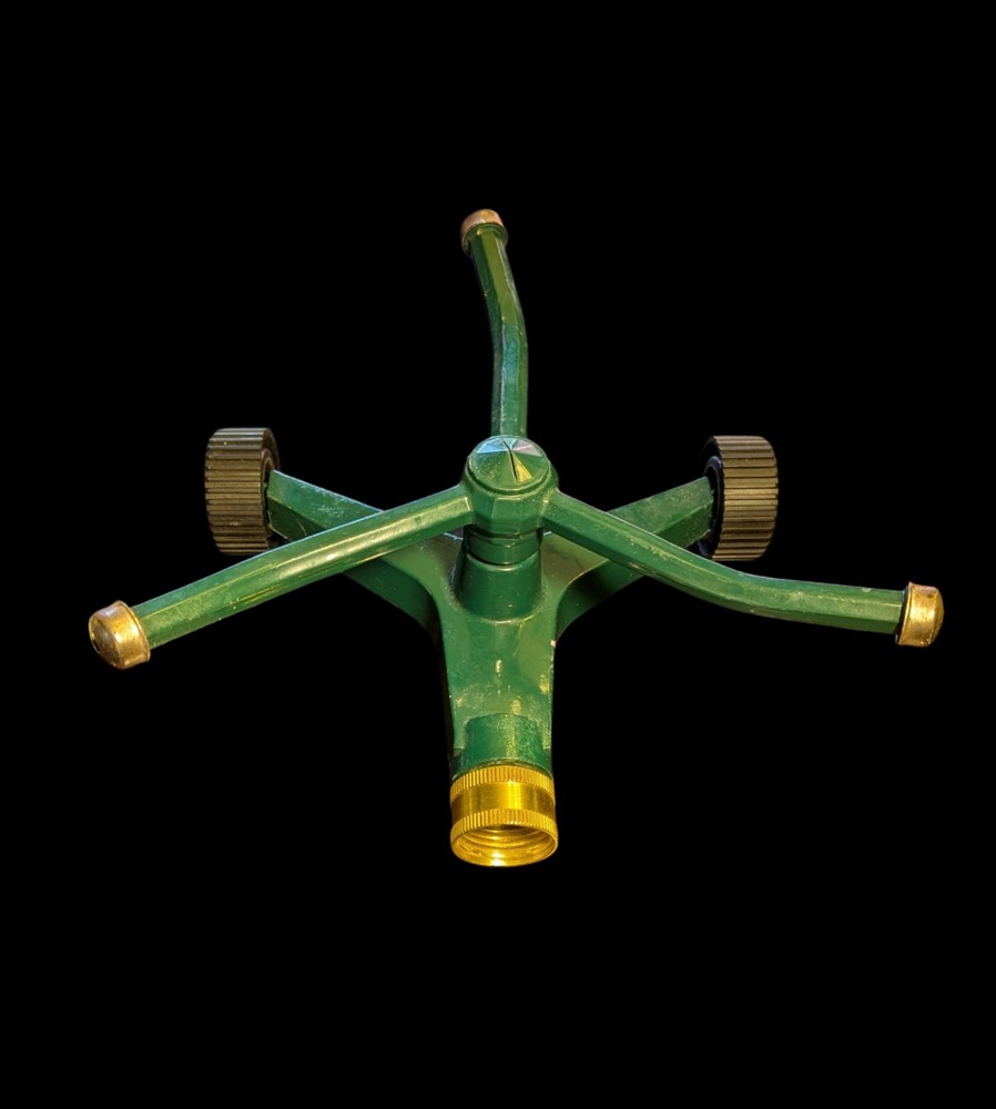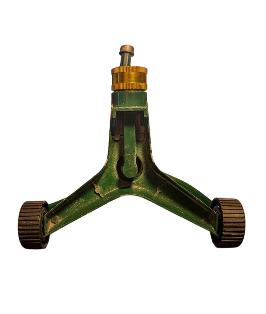 The Green Metal Revolving 3-Arm Rotary Sprinkler with a Wheeled Base is a durable and efficient lawn sprinkler from the brand Rotary. Made of high-quality metal, this sprinkler features three arms for watering various parts of your yard or garden. The green color adds a touch of style to your outdoor watering equipment, while the wheeled base makes it easy to move around as needed. This rotary sprinkler is a reliable choice for maintaining a well-watered lawn and garden.