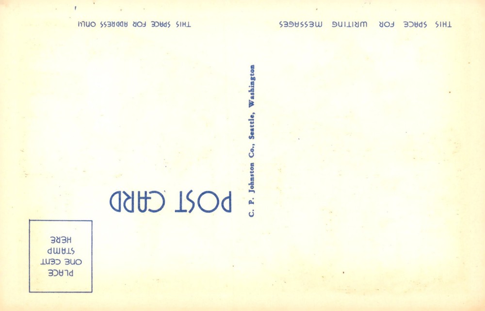 Vintage postcard from C. P. Johnston Co. featuring space for writing messages and address. One cent stamp required.