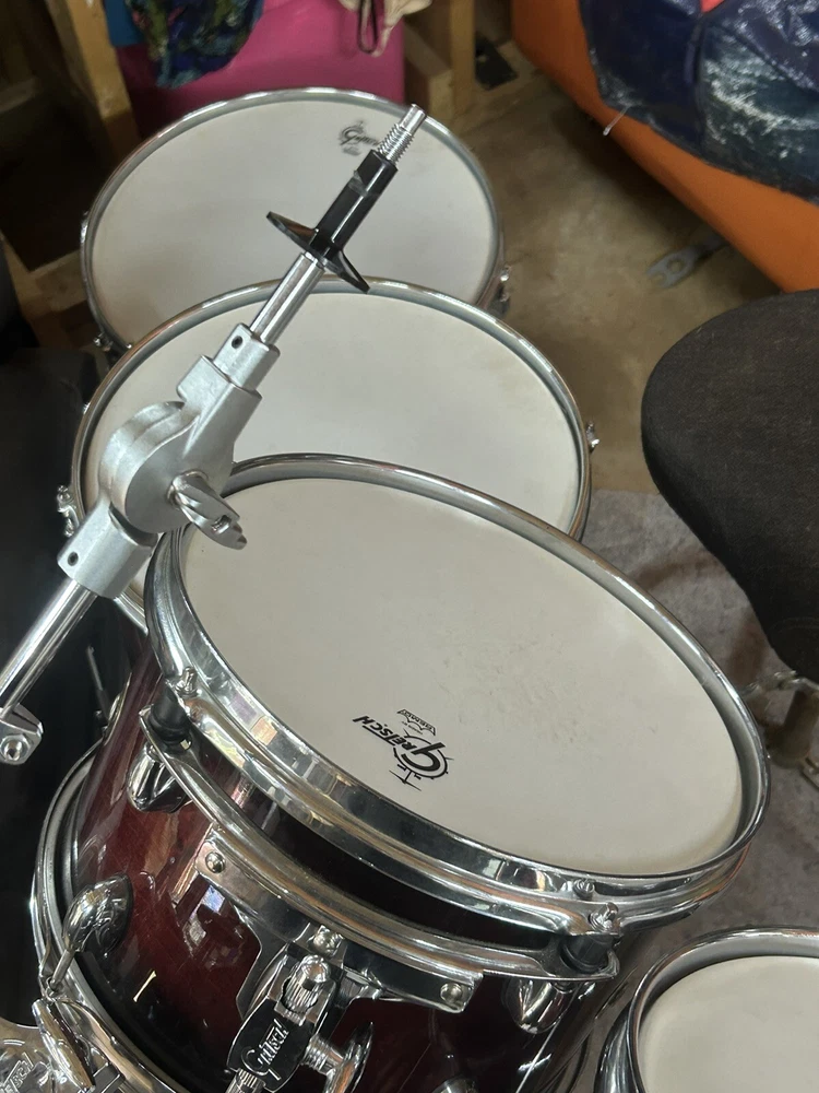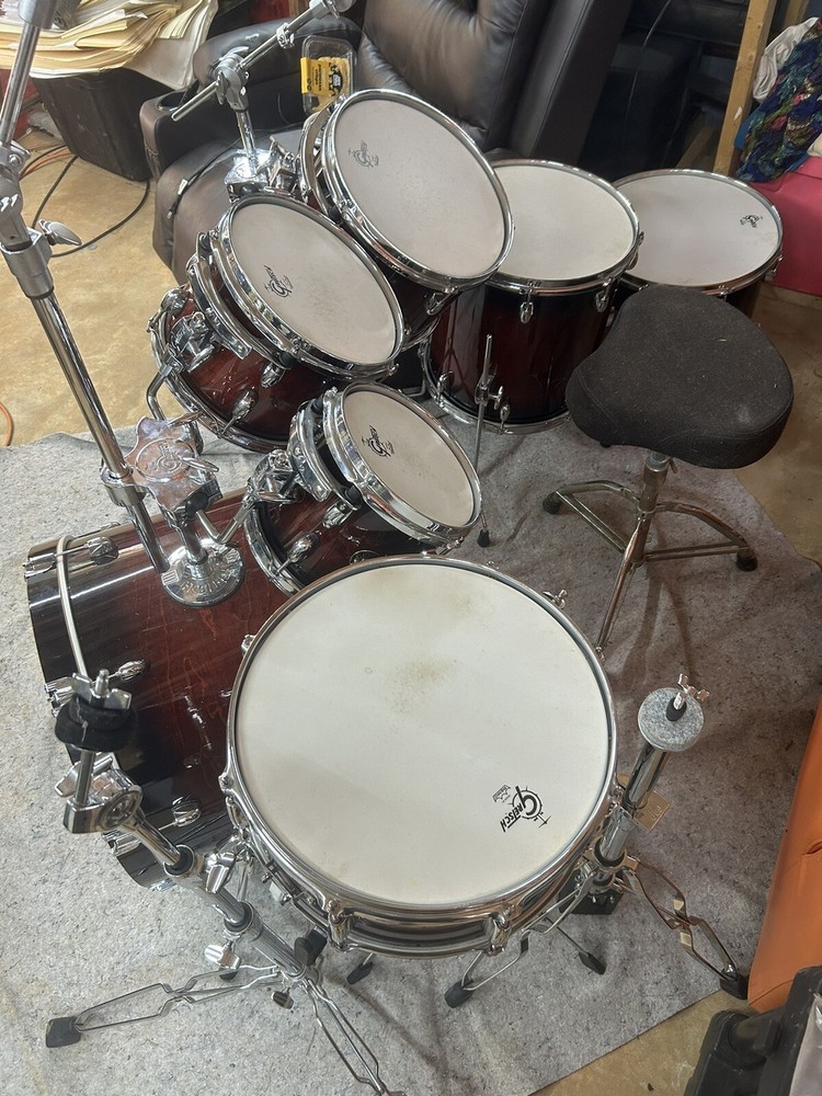 Gretsch Catalina maple 7 pc shell kit with Gretsch/Yamaha hardware, DW 5000 high hat. No throne or kick pedal included. These belonged to a Grammy award-winning guitar player, so there is that…. I have his empty Grammy box too. I will tell you who when you buy them.