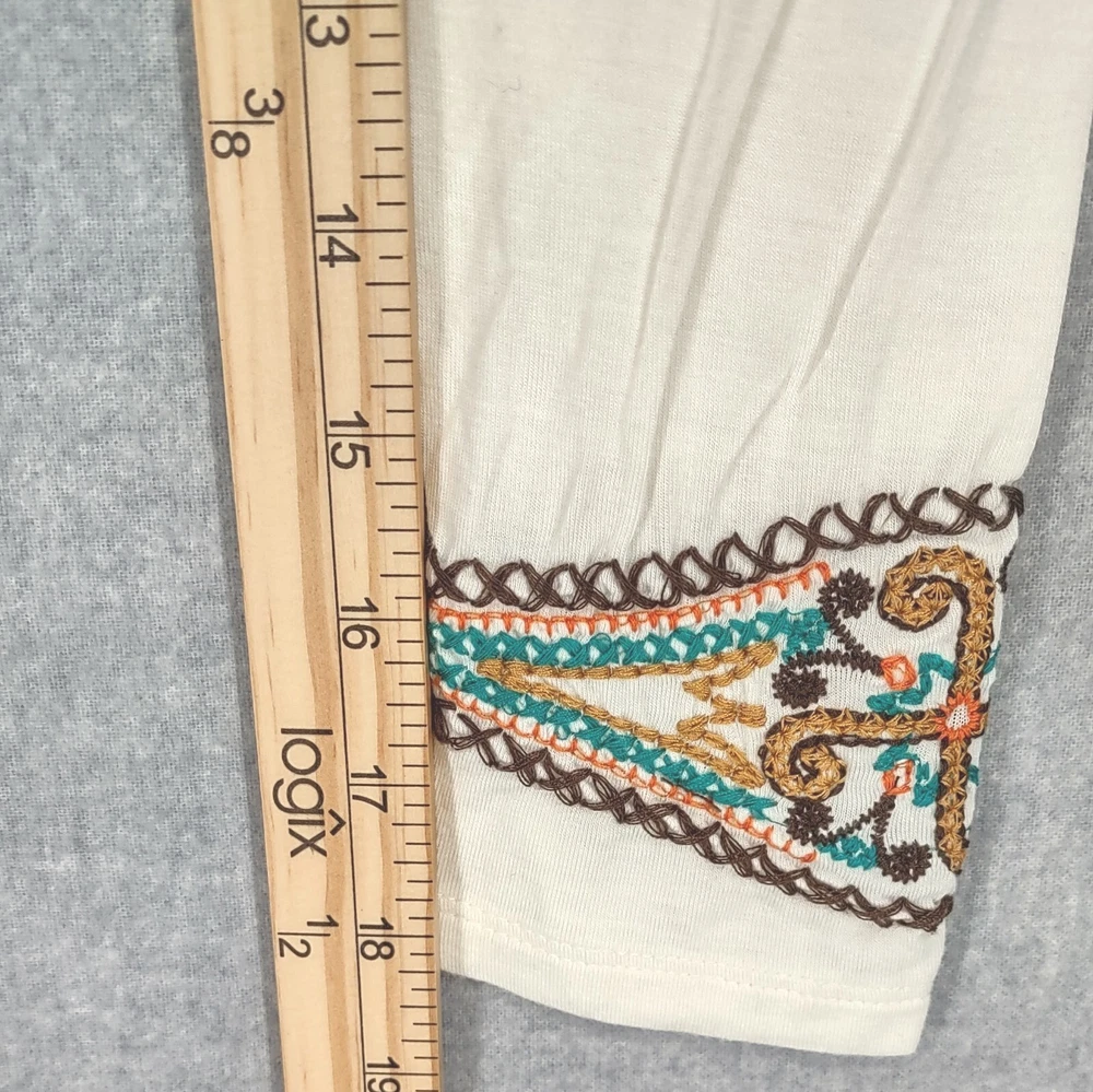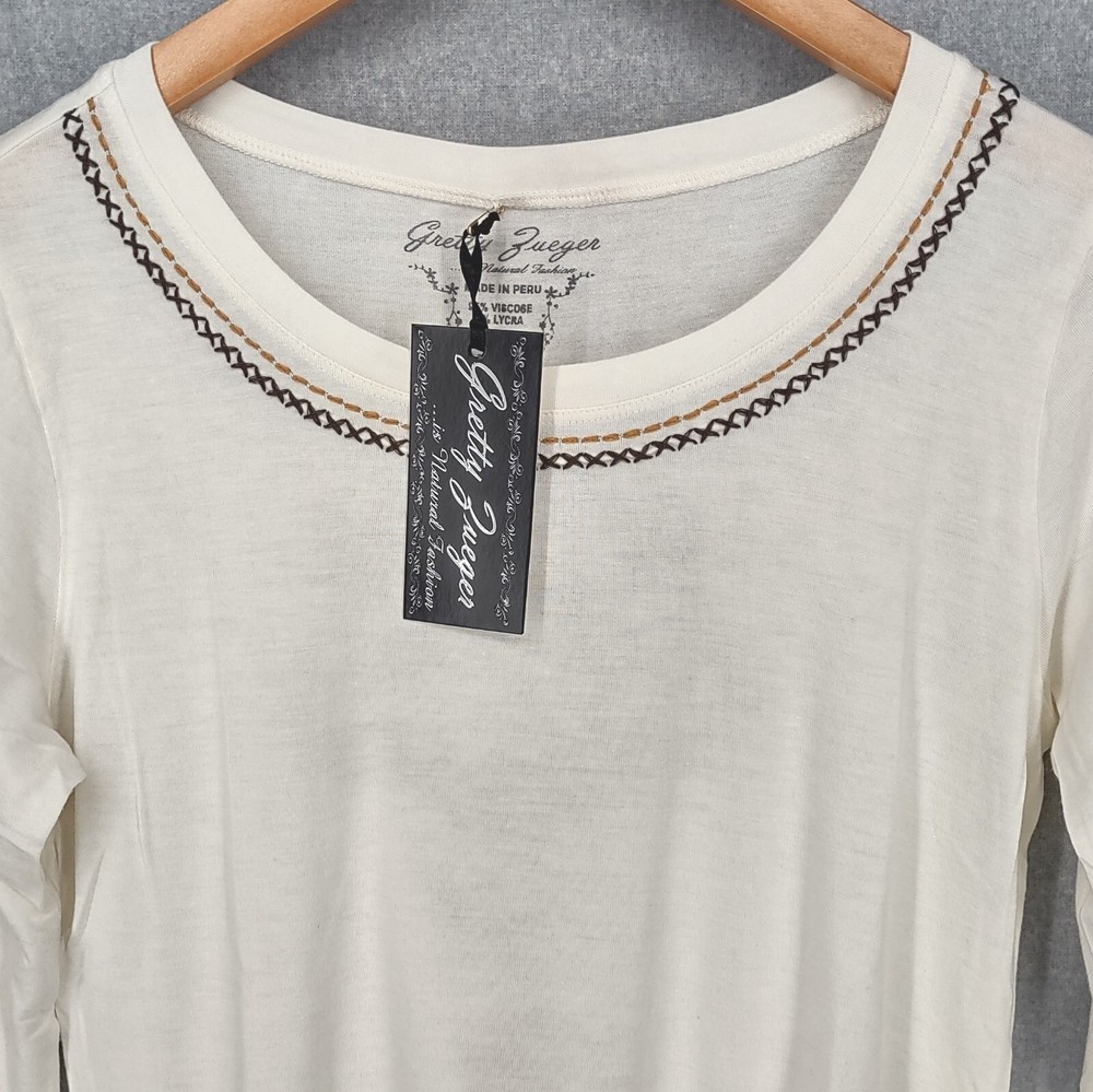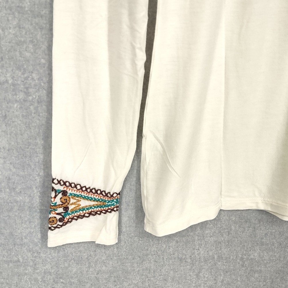Gretty Zueger Top Women Medium Ivory Bohemian Embroidered Western Stretch Rayon Long Sleeve 24" LENGTH: Measured from the top of the shoulder to the hem. 17" WIDTH: Underarm to underarm, measured flat from left to right. 18" SLEEVE LENGTH: Measured from the underarm to the hem. It is always best to compare the measurements above with a top that fits you comfortably. CONDITION - Excellent preowned condition, still has tags, never worn. View photo gallery to see item condition and measurements. SHIPPED - USPS First Class Mail unless item weight requires priority mail. RETURNS accepted, must be returned within 30 days in original condition to receive a full refund. SHIPPING AND HANDLING We ship all packages within five business days Monday through Friday except Holidays. Consolidated shipping is available for multiple purchases. Thank you for helping our planet and buying previously owned and loved items. I am grateful for your business. Enjoy! Check out our eBay store and follow us. There are new listings daily. CUSTOM SKU: 16-1619 Disclaimer: While we make every effort to capture the most accurate depiction of every item when photographing, colors may vary from screen display to in person therefore we cannot guarantee "exact shade" on any item. Message us if you have questions.