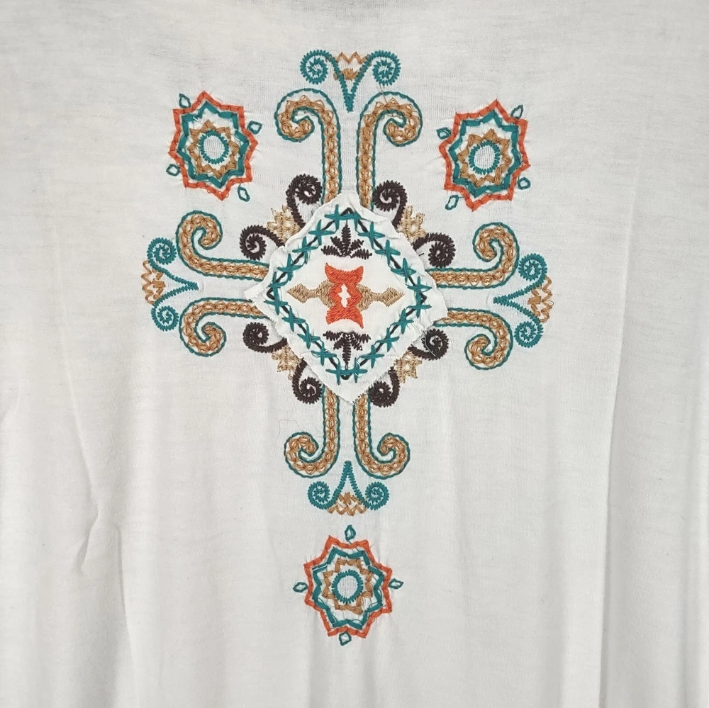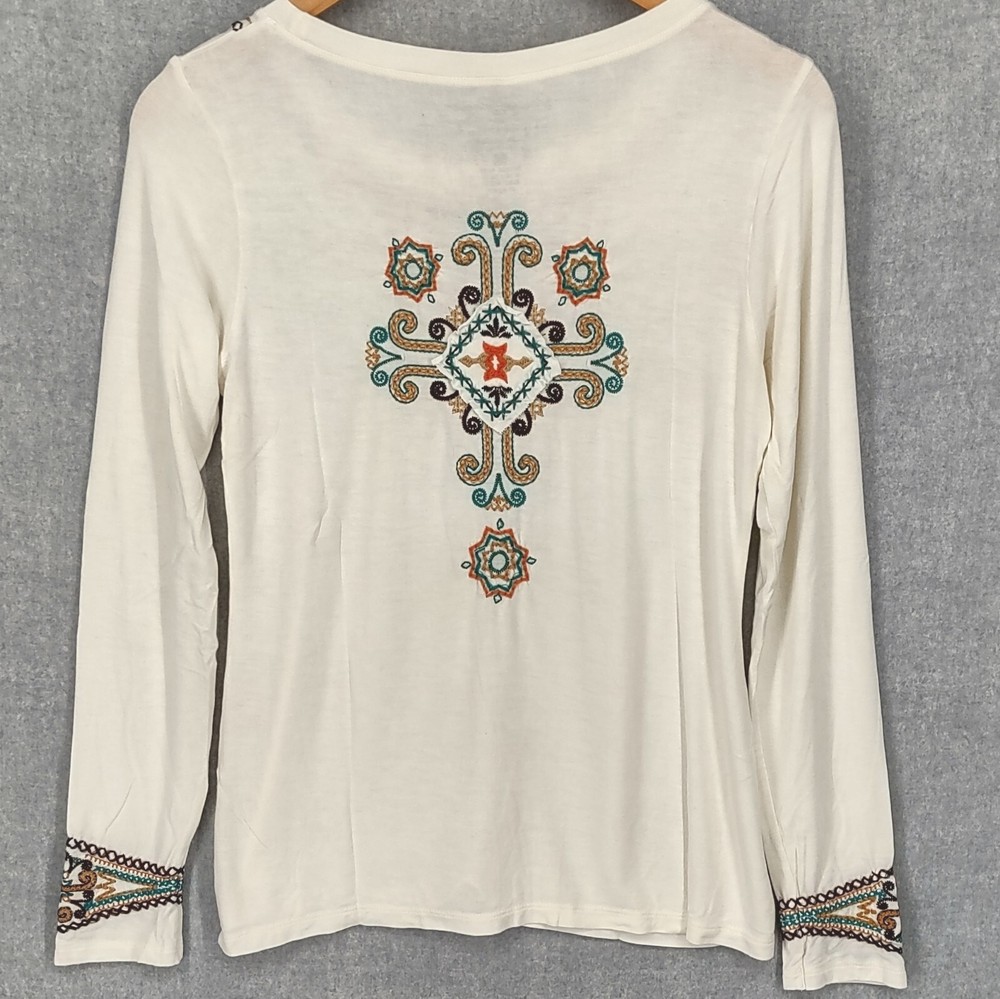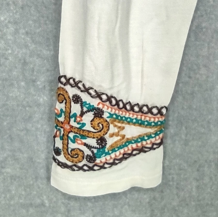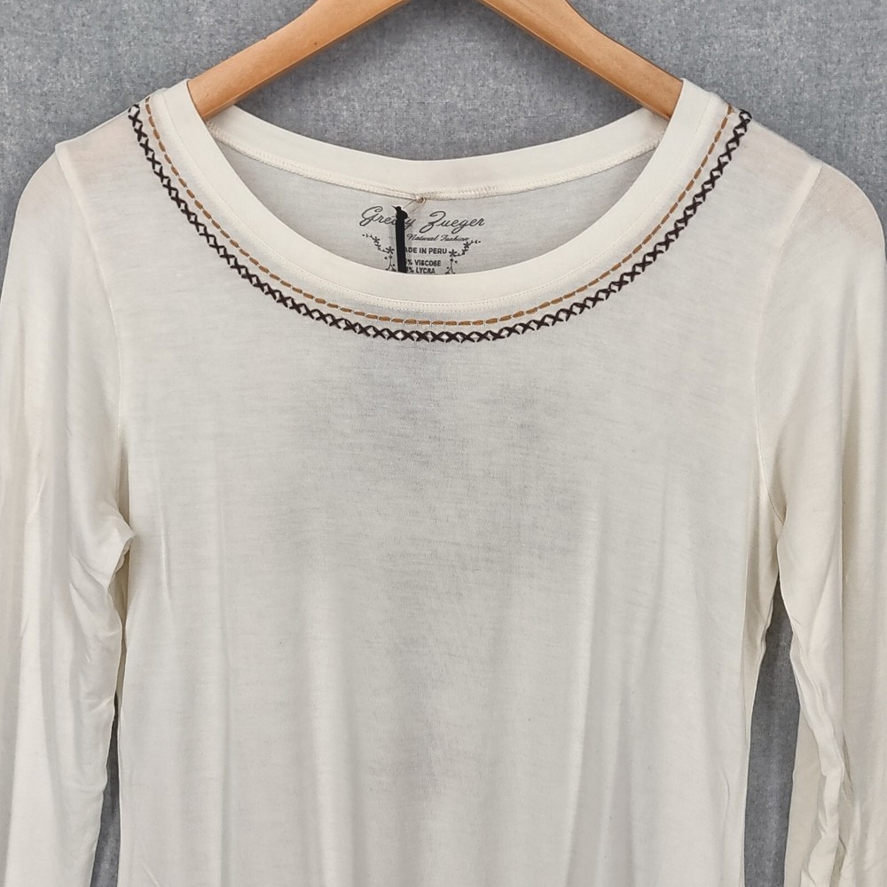 Gretty Zueger Top Women Medium Ivory Bohemian Embroidered Western Stretch Rayon Long Sleeve 24" LENGTH: Measured from the top of the shoulder to the hem. 17" WIDTH: Underarm to underarm, measured flat from left to right. 18" SLEEVE LENGTH: Measured from the underarm to the hem. It is always best to compare the measurements above with a top that fits you comfortably. CONDITION - Excellent preowned condition, still has tags, never worn. View photo gallery to see item condition and measurements. SHIPPED - USPS First Class Mail unless item weight requires priority mail. RETURNS accepted, must be returned within 30 days in original condition to receive a full refund. SHIPPING AND HANDLING We ship all packages within five business days Monday through Friday except Holidays. Consolidated shipping is available for multiple purchases. Thank you for helping our planet and buying previously owned and loved items. I am grateful for your business. Enjoy! Check out our eBay store and follow us. There are new listings daily. CUSTOM SKU: 16-1619 Disclaimer: While we make every effort to capture the most accurate depiction of every item when photographing, colors may vary from screen display to in person therefore we cannot guarantee "exact shade" on any item. Message us if you have questions.