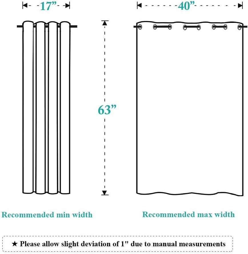 Polyester Imported ELEGANT DESIGN: 1-panel BLACKOUT CURTAIN per package. Each Curtain Panel measures 52" wide x 63" long. The NICETOWN drapery is constructed with gorgeous matte silver grommets, fitting the curtain rod of your choice up to 1.6 inches in diameter, making the curtains easy to install and slide. AMAZING MATERIAL: This unique, soft, and heavy-duty blackout fabric is woven with three-layer construction. The middle layer of black yarns creates a curtain panel that is excellent for blocking out 85%-99% of light (Dark color works better on blocking light) while providing privacy. MULTIFUNCTION: These Blackout Window Curtain Blind will prevent harmful light from reaching your floors and furniture, efficiently prevents cold or heat transfer from outside, will increase the energy efficiency of your home, and allow you to create darkness at any time of day. GOOD CHOICE: Perfect drapery option for anyone seeking to block daylight, take a nap, or keep sun glare off your TV. Besides, you can choose blackout valance and sheer curtains in the NICETOWN store to match. Such curtain sets provide a more permanent harmonious window dressing. EASY CARE: Good-quality finishing will withstand years of use. Machine washable and Wash the water temperature below 86F. Mild detergent no bleaching. Low-temperature ironing. Don’t use sharp things scratching curtains. Product Description We are committed to creating a comfortable and warm environment for our customers.