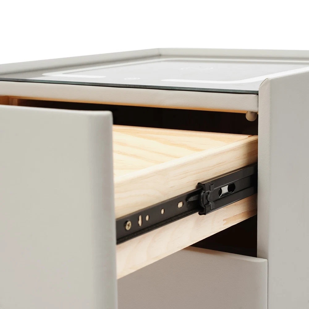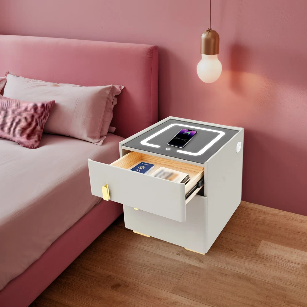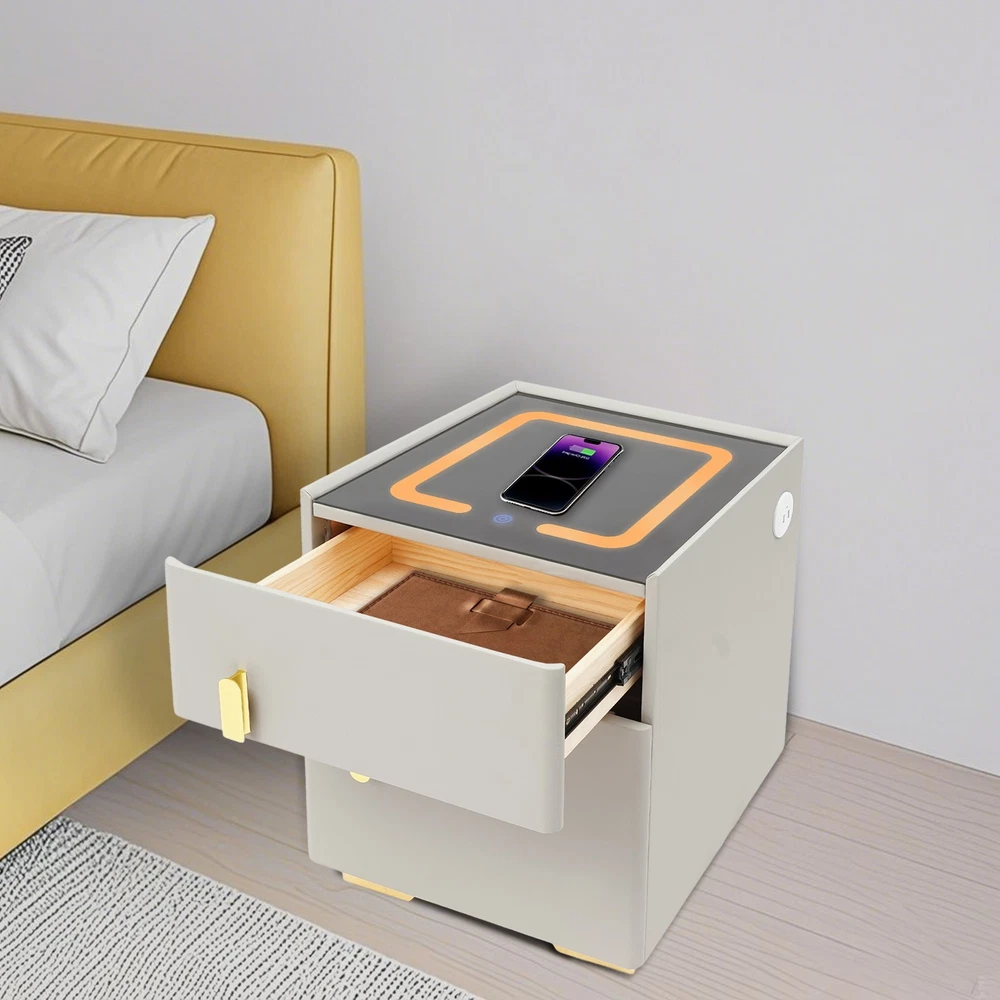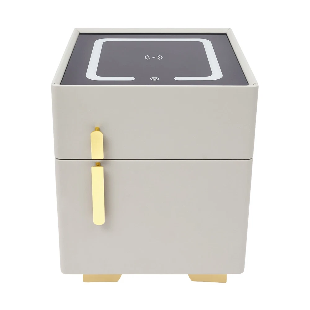 Description This bedside cabinet is not only sturdy and durable but also thoughtfully designed and powerful. The safe design and drawer make it easy for you to store your important items, and the advanced electronic combination locking device supports customized password settings for easy operation and high security. It also integrates charging ports, and Bluetooth speakers, allowing you to say goodbye to extra power strips and reserved space for the speaker. With this product, you can create a neat and cozy bedroom environment. Key Features Sturdy and Durable : Premium tempered glass, pine wood, microfibre, metal, and density board make this product wear-resistant, corrosion-resistant, impact-resistant, and not easy to deform, so it can maintain aesthetics and practicality for a long time. Dual Charging Methods : You can charge your mobile phone by placing it in the corresponding area, getting rid of the bondage and solving the trouble of finding the charging cable. For mobile phones that do not support wireless charging, you can charge them through the USB interfaces with your USB cable. Storage Assistant: The drawer and safe design provide ample space for sorting and storing various items such as documents, cosmetics, and jewelry(all are not included), creating a neat and organized environment. High Security : The password and keys allow you to choose one to unlock the safe according to your actual situation, greatly enhancing the convenience of use. The customizable personal password and triple locking bolts provide extremely high anti-theft performance, ensuring that your valuable items are well protected. Smart Life: The Bluetooth audio allows you to quickly connect your phone's Bluetooth within a 32.81ft range, making it easy to play and transfer music, providing a more relaxed and comfortable listening experience, and creating your private theater. Heavy Duty Design: The heavyweight (37.48lbs) and sturdy screw-fixing design, and heavy-duty feet make it hard to move and carry, preventing theft from easily carrying the whole box. Elegant and Modern: It adopts a classic grey color appearance that can match most decorating styles and color themes, adding elegance and refinement to your bedroom and enhancing the overall style of the space. Ideal Gift : Beautiful appearance and practical function make it can be a housewarming gift for friends. Good Customer Service: We stand behind all our guests and look forward to assisting you with your purchase. It is our pleasure to answer your confusion and questions. The end of the story between us is not "we sell and you buy". Details 3-colour Ambient Light: It lights up with a gentle touch and can be adjusted to white, warm, or neutral so that you can wake up at night without fear of darkness. Practical Handles : They provide a comfortable and safe touch, making it easy for you to push and pull the drawer and door. Raised Edges: They can prevent phones or other items from accidentally falling off, ensuring safe use. Application The product is suitable for offices, homes, and other places for storing all kinds of valuables such as jewelry, documents, passports, and money. Specifications Material: Tempered Glass, Pine Wood, Microfibre, Metal, Density Board Color: Grey Style: Modern Shape: Rectangular Mount Type: Floor Standing Assembly Required: No Plug Type: US Standard Adapter Input: 100-240VAC 50/60HZ Adapter Output: 12V 3A Light Source: LED Light Color: White, Warm, Neutral Color Temperature: 6000K, 4500K, 3000K Unlocking Method: Password/Key Safe Box Battery Type: 4*AA Batteries Initial Password: 159b Bluetooth Connection Distance: 10m/32.81ft Product Size: 40*40*50cm/16*16*20in Package Size: 52*45*45cm/20.47*17.72*17.72in Gross Weight: 18kg/39.68lbs Net Weight: 17kg/37.48lbs Package Included 1*Bedside Cabinet 2*Keys 1* Adapter 1*English Manual 1*Chinese Guide 1*Key Storage Bag Notes Please confirm the installation dimensions before purchasing. Please read the user manual carefully and pay attention to the safety precautions before use. Please note that the USB plug is installed on one side only. Please be careful not to put the key into the safe. If you enter the wrong password 3 times in a row, you must wait 20 seconds and retry. If the wrong password is entered again 3 times, you must wait 5 minutes before retrying. If the battery is low, the red light located in the center of the panel will illuminate. Please allow the slight color difference caused by the shooting light and 1-3 cm error due to manual measurement, and make sure you do not mind before ordering. Payment Delivery details Terms of sales About us Contact us Payment We accept ebay payment 。 Fees such as import duties, taxes are not included in the item price or shipping costs. These charges are the buyer's responsibility. Delivery details Shipping: 2-9 working days to: USA Terms of sales We maintain high standards of excellence and strive for hundred percent customer satisfaction. Feedback is very important to us. We hope that you contact us immediately before you give neutral or negative feedback, so that we can address your concerns. It is impossible to address issues if we do not know about them! About us Your satis faction is our ultimate goal. We work hard to earn your trust and future business. Our certified technicians have tested each item before shipping. The unit comes with 1 year limited warranty on all manufacturing defects. a) If you receive a defective item, you may return it or ask for a discount. Please contact us within 14 days after you receive the package. b) What you returned must be intact and in its original packaging as re? u. Customer is responsible for shipping costs of the returned item. c) We will cover the cost of shipping back t with the shipping rate indicated in the registration page. We will send you a new unit or refund the full payment you paid. Thank you. Contact us Business Hour Business Hour: Monday To Friday: 8:30 AM to 5:00 PM (Beijing