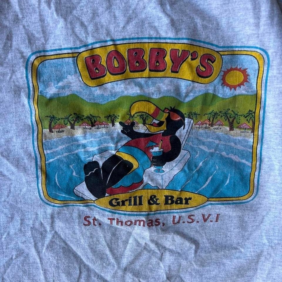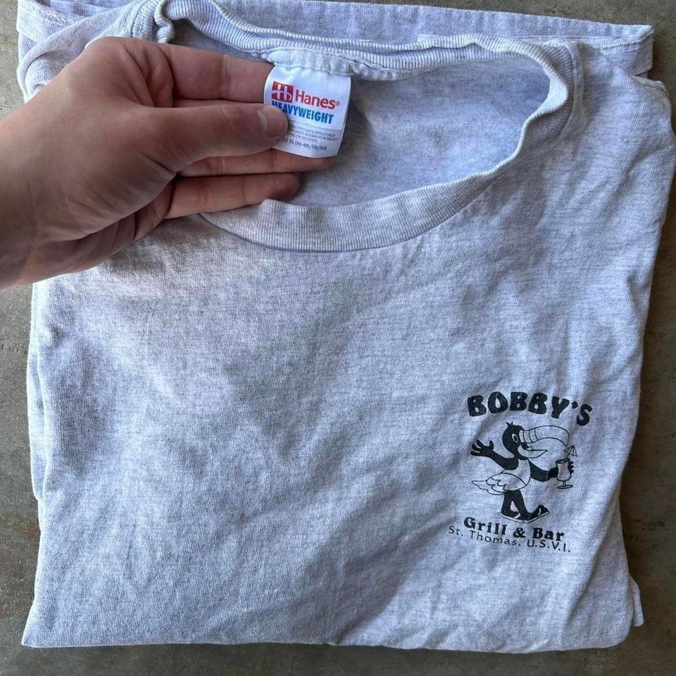 Grey vintage Bobby's bar graphic shirt Hands heavyweight Size xl Neck collar is a bit rolled shrunken in