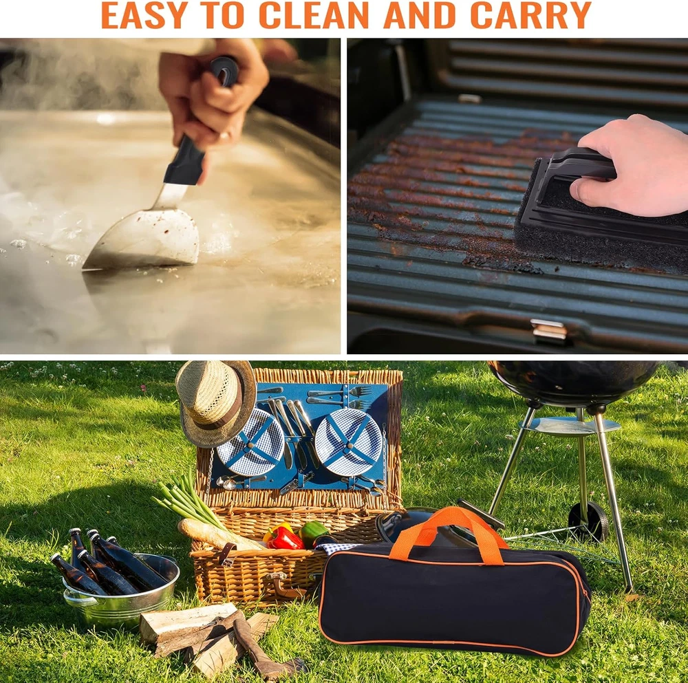 Store New Arrivals Add to Favorite View Feedback Contact Griddle Accessories, 16Pcs, Griddle Spatula Set for Blackstone and Camp Chef Stainless Steel BBQ Accessories with Spatula, Scraper, Bottle, Tongs, Egg Ring Description Item dimensions L x W x H 1 x 1 x 1 inches Number of Pieces 16 Item Dimensions 1 x 1 x 1 inches Material Stainless Steel Material Type Stainless Steel Handle Material Metal,Silicone,Stainless,Stainless Steel,Steel Is the item dishwasher safe? No Included Components Spatula Professional Grade Stainless Steel: Our griddle accessories are crafted from 304 food-grade stainless steel, providing exceptional hardness and durability while ensuring safe and healthy food preparation. With the ability to easily handle foods such as hamburgers, patties, and steaks, our sturdy and thick stainless steel design is built to withstand long-term use, making it a nice barbecue accessory. Long-Lasting Quality: Our grill accessories are surface-treated with anti-rust technology to minimize the possibility of rusting. After use, simply allow them to air dry and store them in the included bag, reducing the need for additional maintenance steps like applying slushing oil to the metal surface. This makes our tools both convenient and long-lasting. Note: To avoid damaging the protective layer, do not use a sharp cleaner to scrub the surface of the tool. Complete Grill Set: You'll receive a full 16-piece grill tools kit, which includes 1 large spatula, 1 small spatula, 1 small slotted spatula, 1 hamburger spatula, 1 silicone brush, 1 grill locking tong, 1 chopper, 1 scraper, 1 Cleaning Brush, 2 sauce dispensers, 2 spice shaker, 2 egg molds, and 1 carry bag. Our BBQ set is the most comprehensive on the market, capable of meeting all your needs. Heat-Resistant Handle: Our handles are designed to be long enough, fitting adult male hands comfortably. Constructed from ABS heat-resistant, they effectively block the transfer of heat. This means that even when the griddle is working at high temperatures, your hands will remain cool and protected. It's also perfect for those who want to help with cooking. The Perfect Gift: Our barbecue tools are suitable for yard, outdoor, and camping barbecues, making them an excellent gift choice for Father's Day, Thanksgiving, and Christmas. This versatile set of tools is an indispensable aid for foodies looking to explore their culinary journey. Product Description Whonline is committed to establishing a brand of gardening tools that meet the various needs of customers. Our efficient tools will help you take care of your cute greenery more easily, and at the same time let you embrace the fun of gardening. Although our scale is small at present, we will continue to develop convenient and practical high-quality products that satisfy you and facilitate your green and healthy life. Complete Grill Set: 1 large spatula, 1 small spatula, 1 small slotted spatula, 1 hamburger spatula, 1 silicone brush, 1 grill locking tong, 1 chopper, 1 scraper, 1 Cleaning Brush, 2 sauce dispensers, 2 spice shaker, 2 egg molds, and 1 carry bag. All these will help you become a professional chef for teppanyaki in camping. Food Grade Stainless Steel Food grade stainless steel is not only sturdy and thick, but also healthier and safer. High-quality stainless steel will greatly increase the life of these tools. Hanging Holes Design The sturdy ABS plastic handles are designed with hanging holes, simply hang them on the grill hooks or kitchen hooks so that these tools could be organized and stored easily. Easy to Clean Our 16pcs griddle accessories set includes a scraper and a cleaning brush to help you complete the cleaning work effectively without harming your griddle. ABOUT US We offer the best prices around on high quality products. Our E-store includes media such as books, movies, music and games while offering electronics, toys, sporting apparel, clothing, tools, general home, garden items and more. SHIPPING We are always working hard to ensure your package arrives as soon as possible. Please understand that some factors like weather, high postal traffic, and the performance of shipping companies are outside of our control. We offer free shipping to the lower 48 states and ship within 2 business days of payment, usually sooner. We do not accept P.O. Boxes. Please provide a physical address. For shipping outside of the continental USA, we only use eBay's Global Shipping Program.The item is shipped to KY and then sent to the rest of the world. International customers are responsible for all duties and taxes. Continue to check out in order to calculate costs for shipping the item to your country. Messages regarding eBay's Global Shipping Program MUST be directed at eBay EXCLUSIVELY. RETURNS We offer a 30-Day Return Policy on items which you are not completely satisfied with. You have the option for a full-refund or an exchange of the item. No returns are available on items shipped outside of the USA. PAYMENT We accept PayPal. CONTACT US This page content is yet to come Please ad us to your favorite seller and visit again later Thank You CUSTOMER SATISFACTION We try our very best to make sure every customer is completely satisfied. If there's a problem, message us! We're happy to help. WE ACCEPT Copyright © 2021 AutoDS. | All Rights Reserved