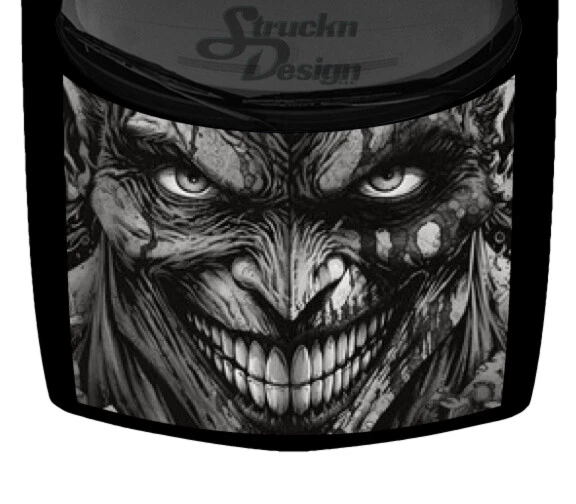 Grunge Grey Joker Clown Face Comic Style Abstract Hood Wrap Vinyl Graphic Decal