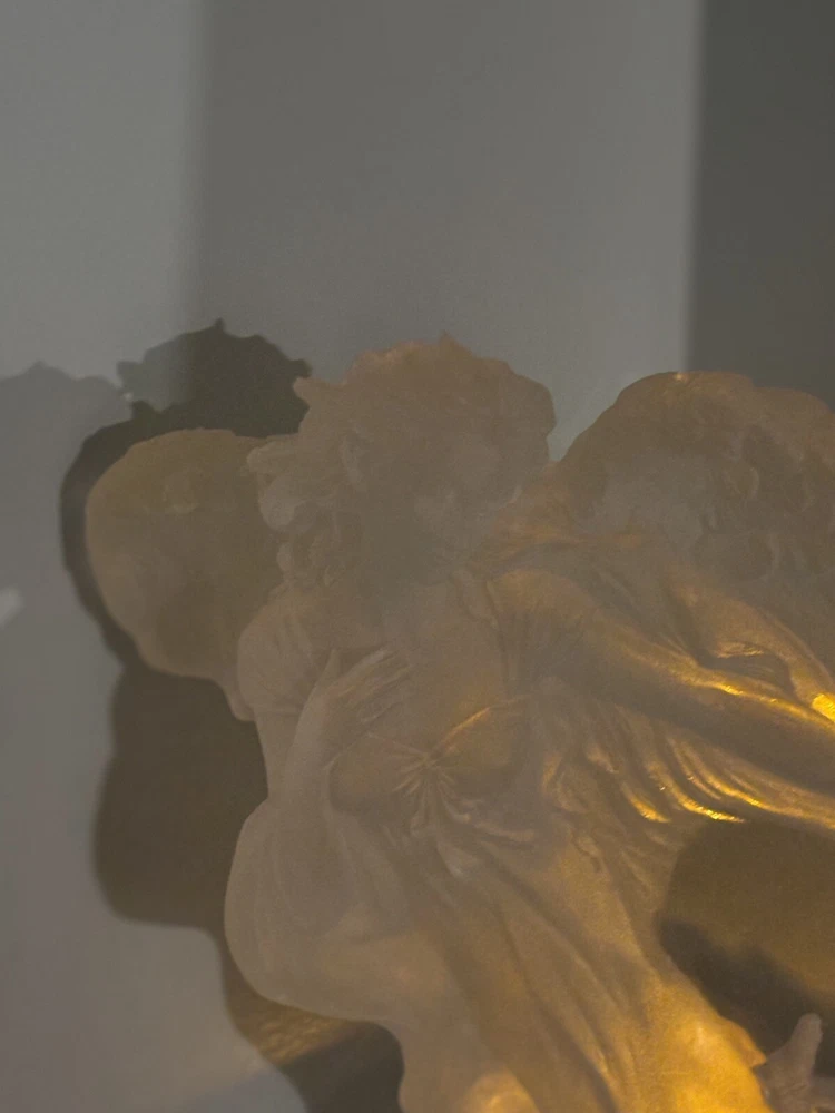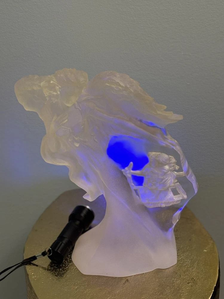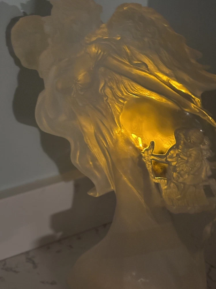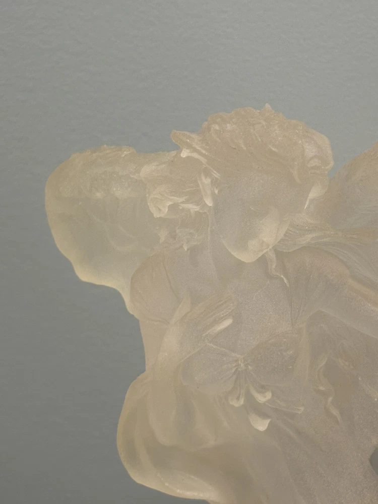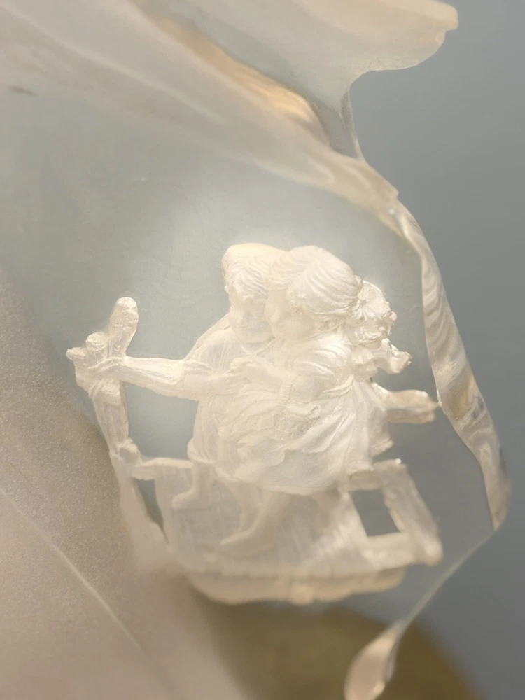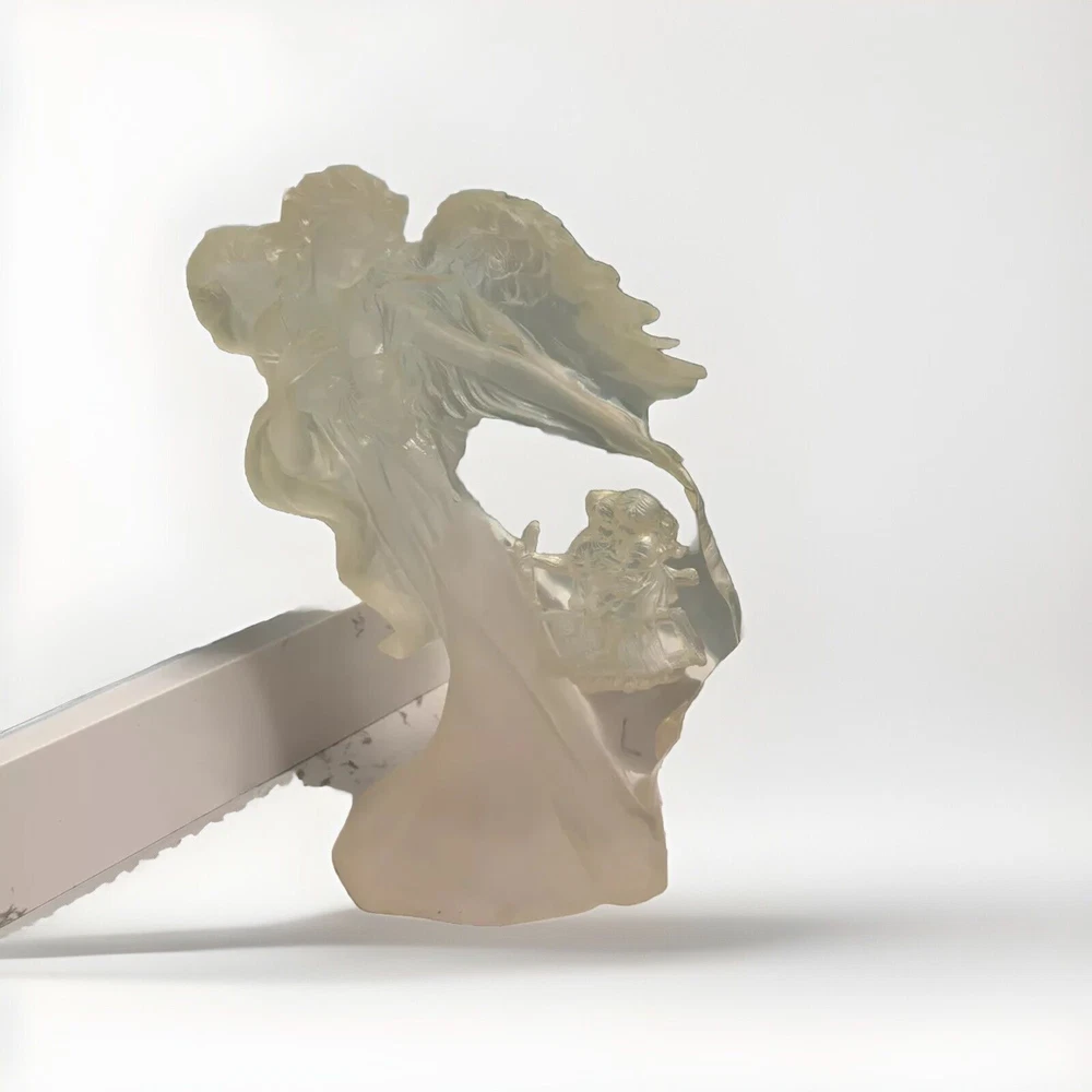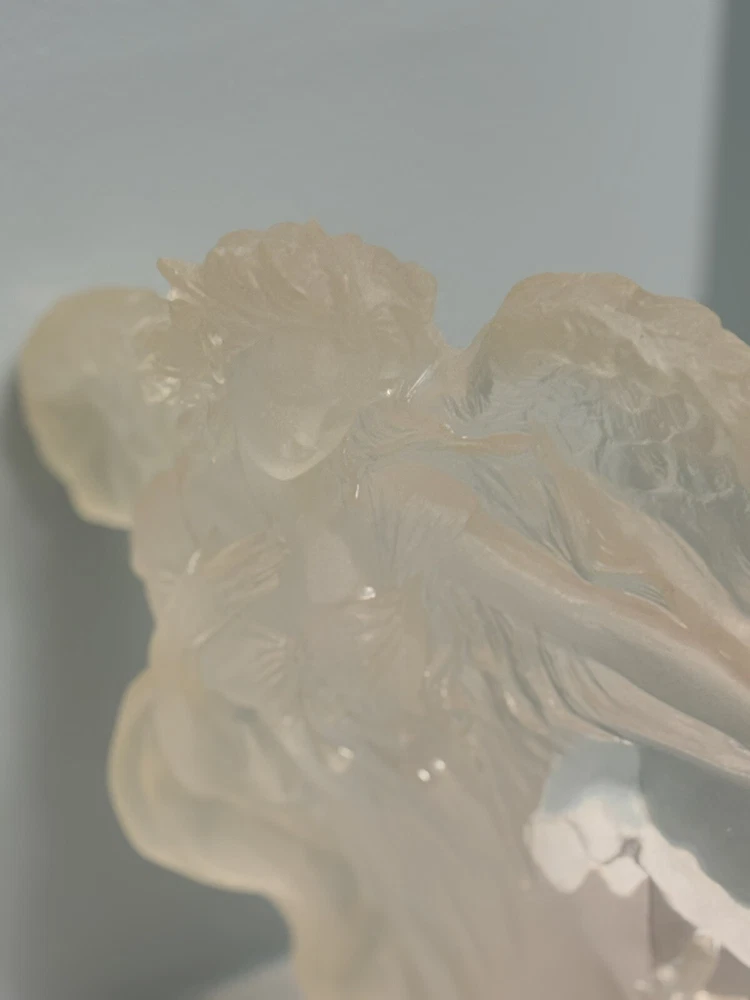 This vintage Guardian Angel statue is a beautiful addition to any room. Made from acrylic/lucite material, it features a frosted finish and a 3-D effect that adds depth to the intricate carvings. Measuring 12.5 inches in length, 12 inches in height, and 7 inches in width, this statue is perfect for teens and adults alike. The statue depicts a guardian angel watching over children, and it is waterproof, making it suitable for indoor use. The raised relief and translucent features add to the overall charm of the statue, which is ideal for collectors of angelique items. This original piece from the late 20th century is a must-have for anyone who believes in angels and wants to add a touch of religious theme to their decor. Thank you for your consideration! Returns accepted within 30 days; buyer pays return shipping