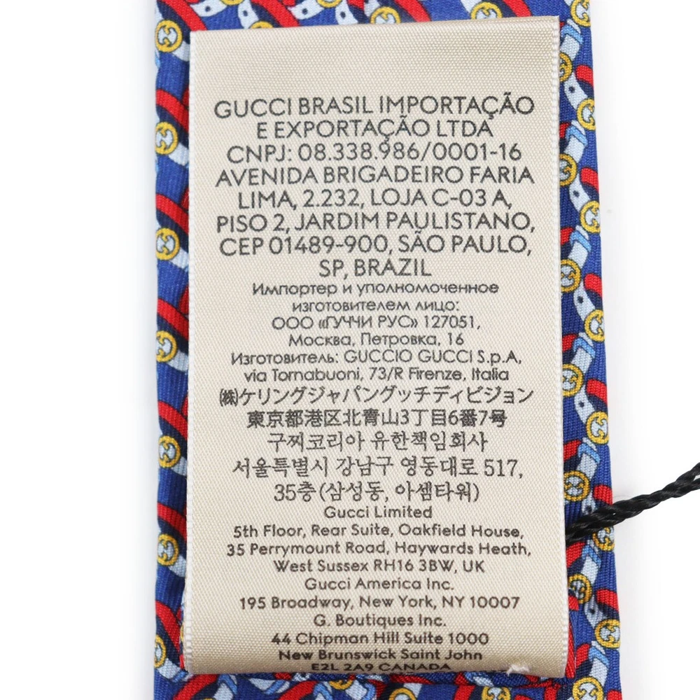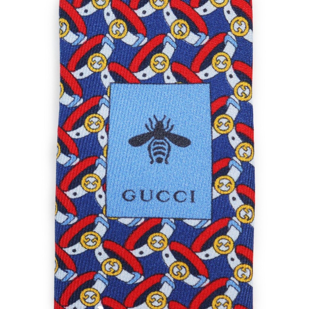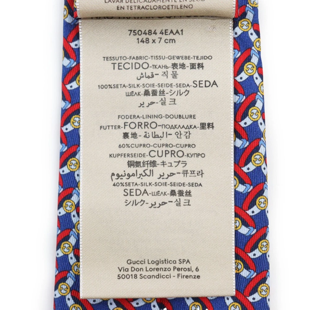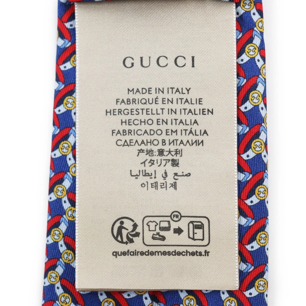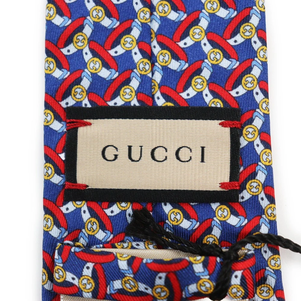 Gucci Navy Silk Tie Belt Horsebit Pattern Men's Business Dress Accessories