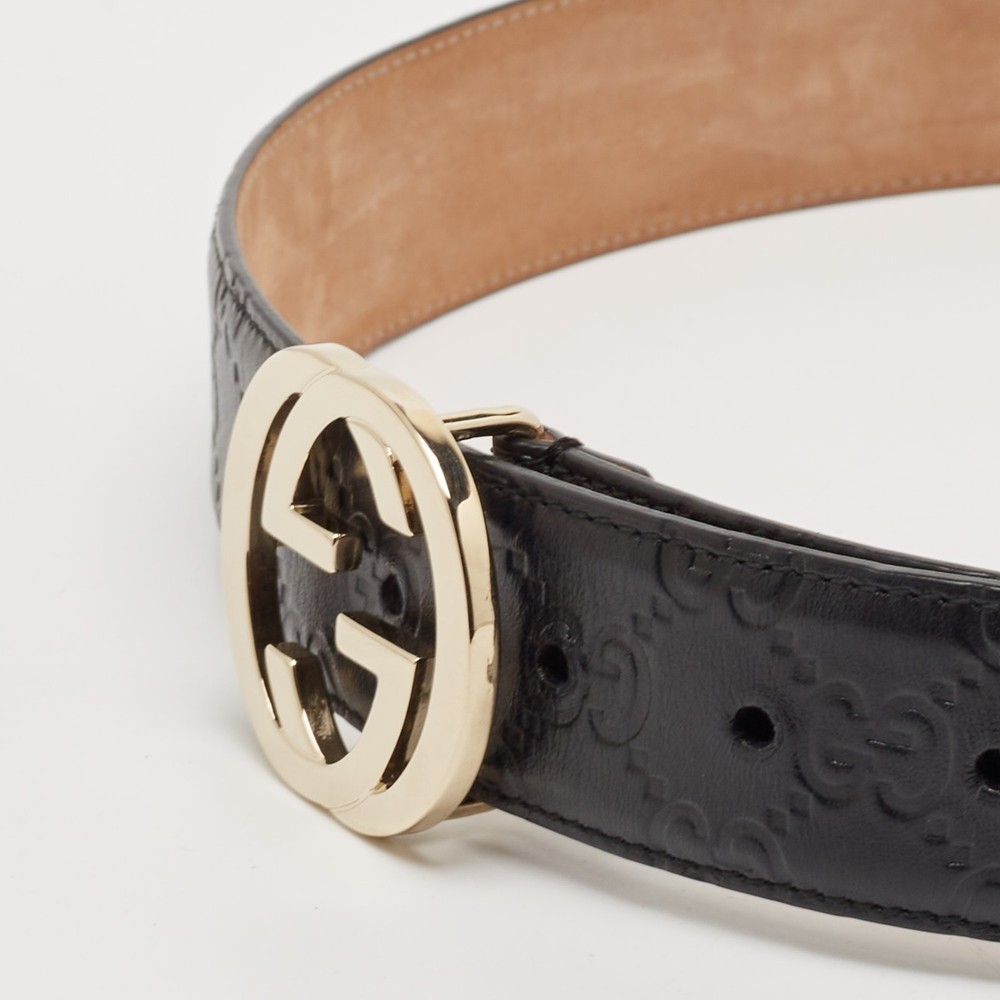 A true wardrobe staple, this black Guccissima leather belt is all about understated luxury. The signature interlocking G buckle adds just the right amount of flair, making it the perfect go to for everyday wear.Certified by The Luxury Closet - This item has gone through a detailed authentication process overseen by our experts. We offer a lifetime guarantee of authenticity on all our items. Import duties, taxes and charges are not included in the item price. These charges are the buyers responsibility. Please check with your country’s customs office to determine what these additional cost will be prior to buying. Our eBay Store About Us Contact Us Add to Favorite Sellers Gucci Black Guccissima Leather Interlocking G Buckle Belt 80 CM $308 A true wardrobe staple, this black Guccissima leather belt is all about understated luxury. The signature interlocking G buckle adds just the right amount of flair, making it the perfect go to for everyday wear. Product Details Brand Color Black Dimensions Width: 3.5 cm, Length: 80 cm Material Leather Size 80 CM Outsole Width Outsole Length Heel Height Includes Original Dustbag, Original Box Certified by The Luxury Closet This item has gone through a detailed authentication process overseen by our experts. We offer a lifetime guarantee of authenticity on all our items. How We Check The in-house team of experts at The Luxury Closet is highly trained to verify the authenticity and the condition of the luxury products. They ensure that only 100% authentic items are put on sale.The evaluation process is unique with its own mix of assessment criteria and differs according to the category. Each item is evaluated based on the following combination of hallmarks, hardware, stitching, symmetry, material, craftsmanship, stamping, codes, hologram stickers, and packaging. Our authenticators also check if the items have been modified or amended (e.g., aftermarket diamonds, replaced batteries, repaired bags, etc.) International Buyers Import duties, taxes and charges are not included in the item price. These charges are the buyers responsibility. Please check with your country’s customs office to determine what these additional cost will be prior to buying.