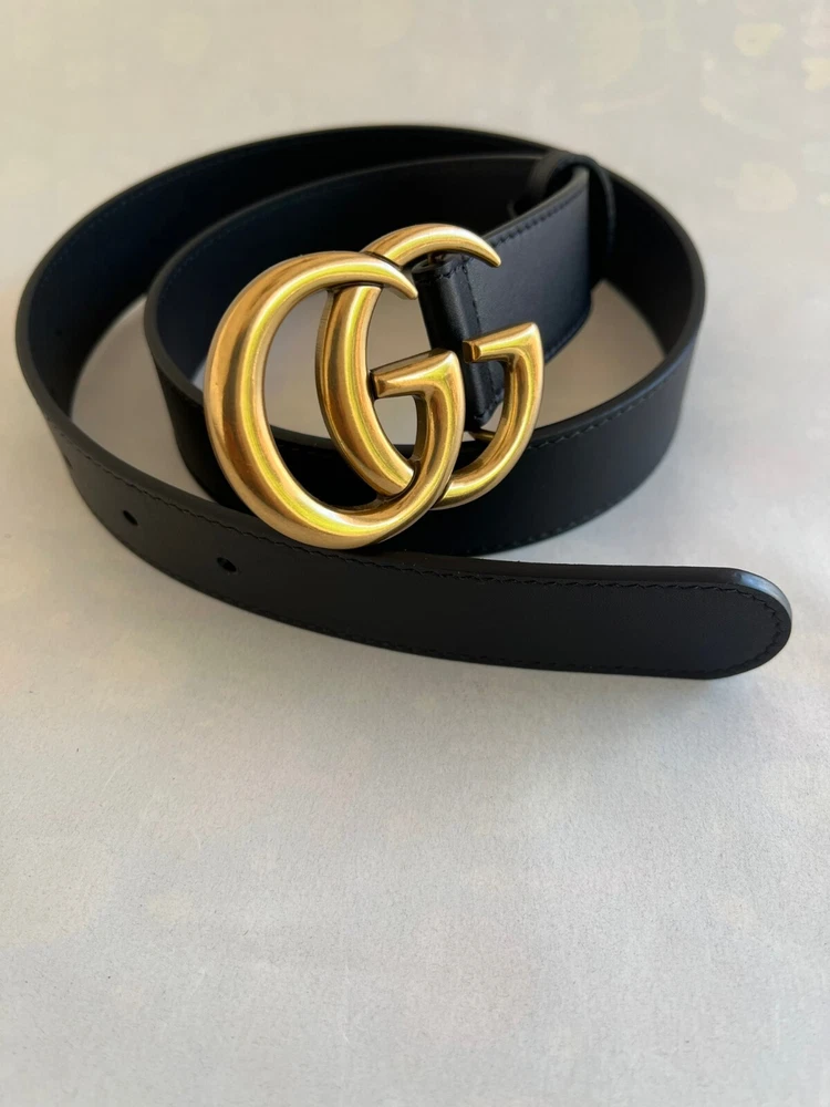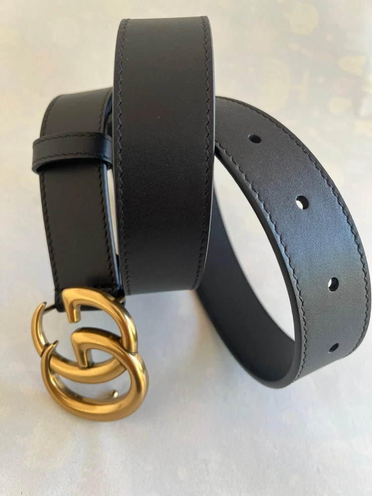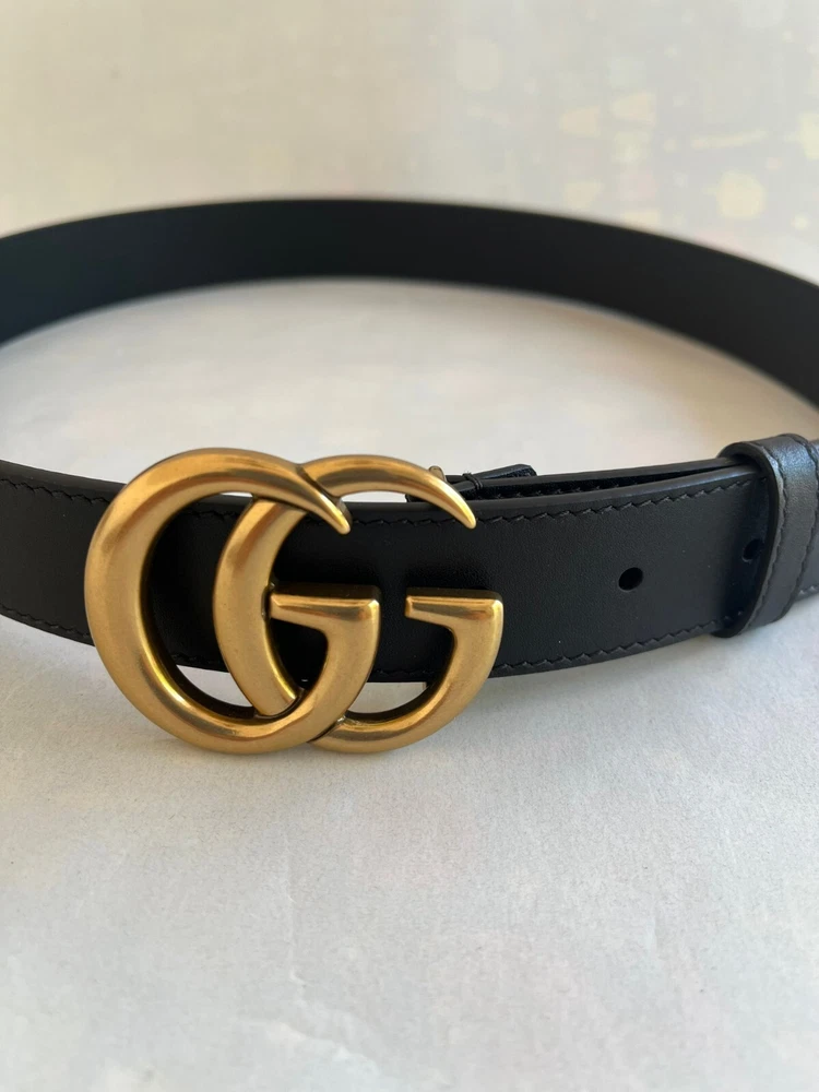 Gucci Skinny Leather Belt with Double G Buckle Black Size 80 cm, fits 28/30 waist, fits dress size 2-4 in Excellent Condition, comes with Dust Bag and BOX.