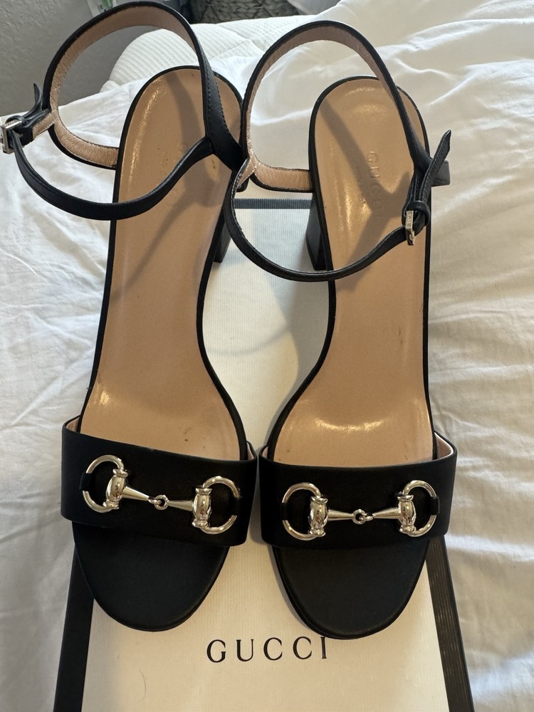 Gucci Horesbit Black Leather Heels Pre owned; size 39 Comes w/ box