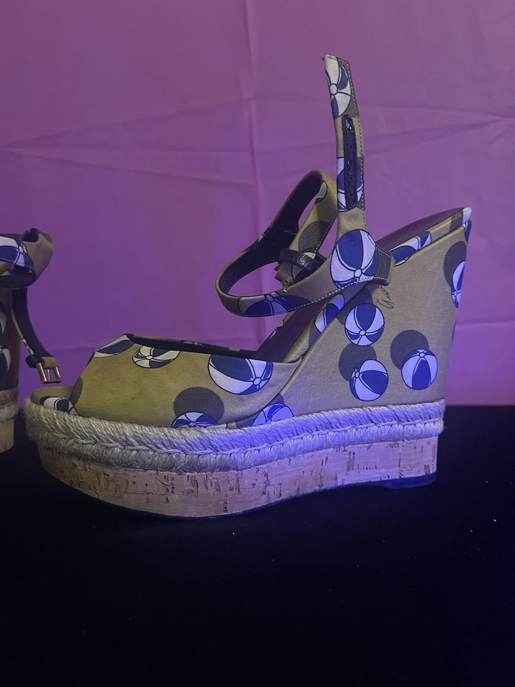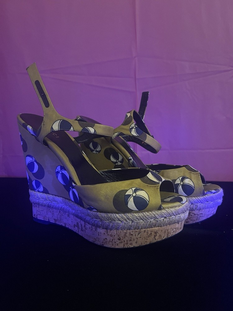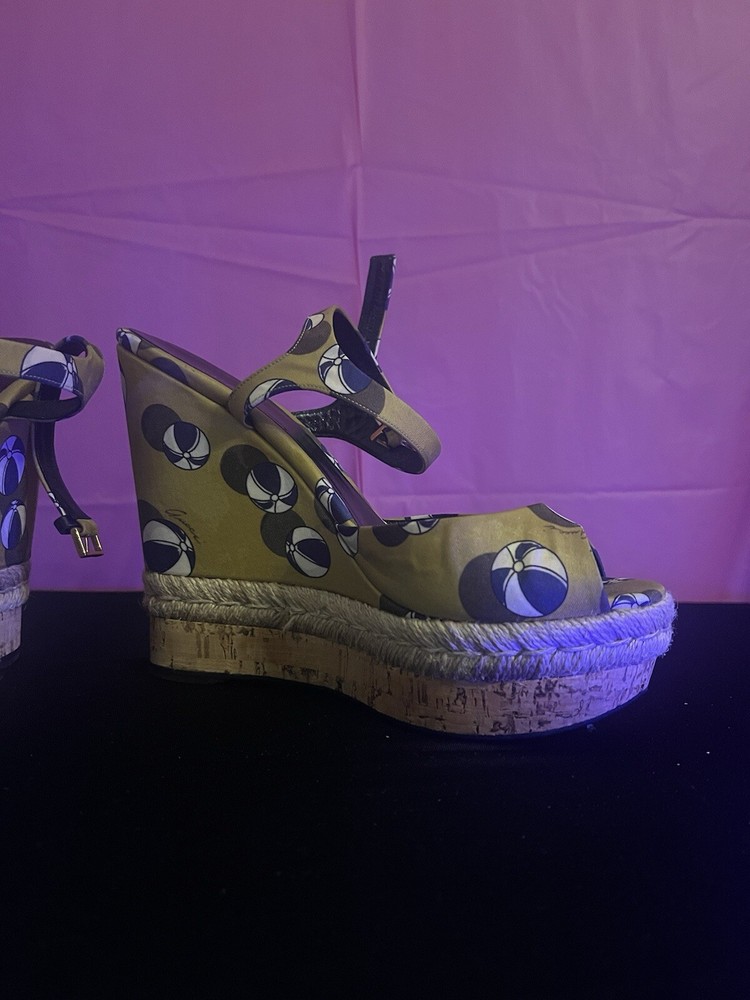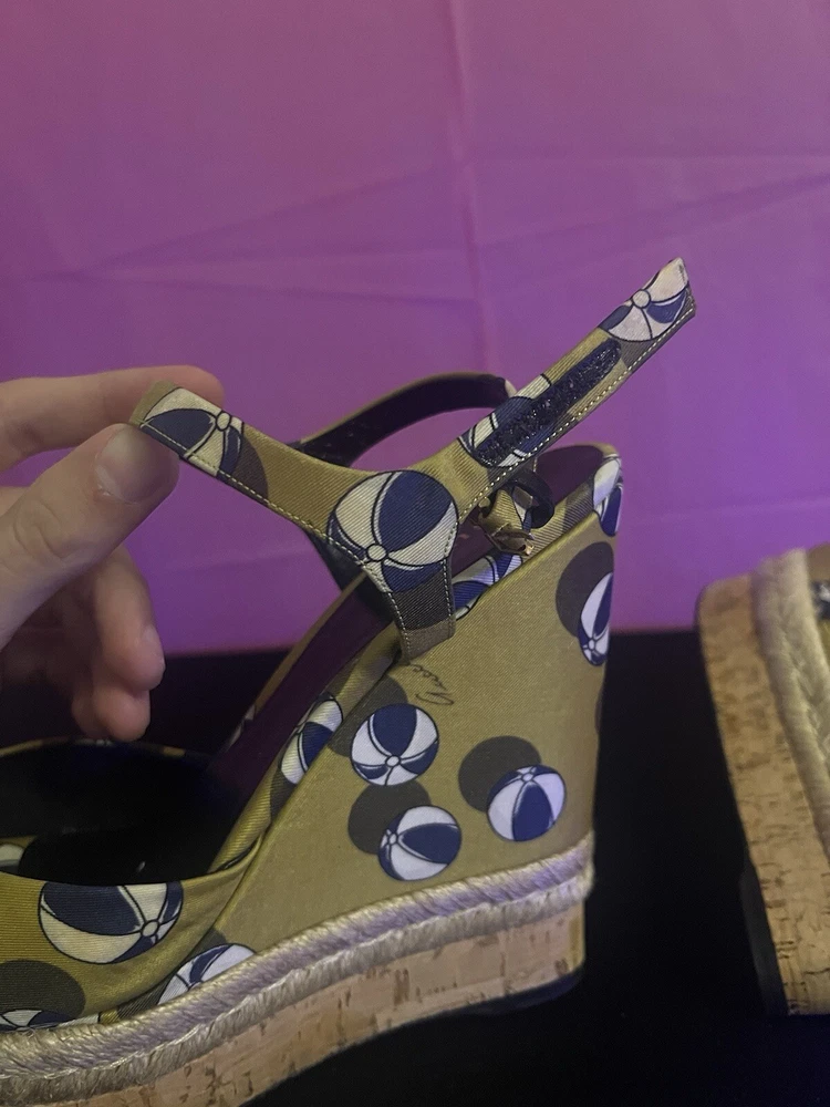 $ 27.46Aldo Black Gold Strappy Wedge Sandals Cork Leather Size 8.5