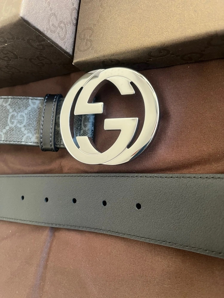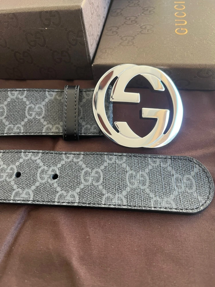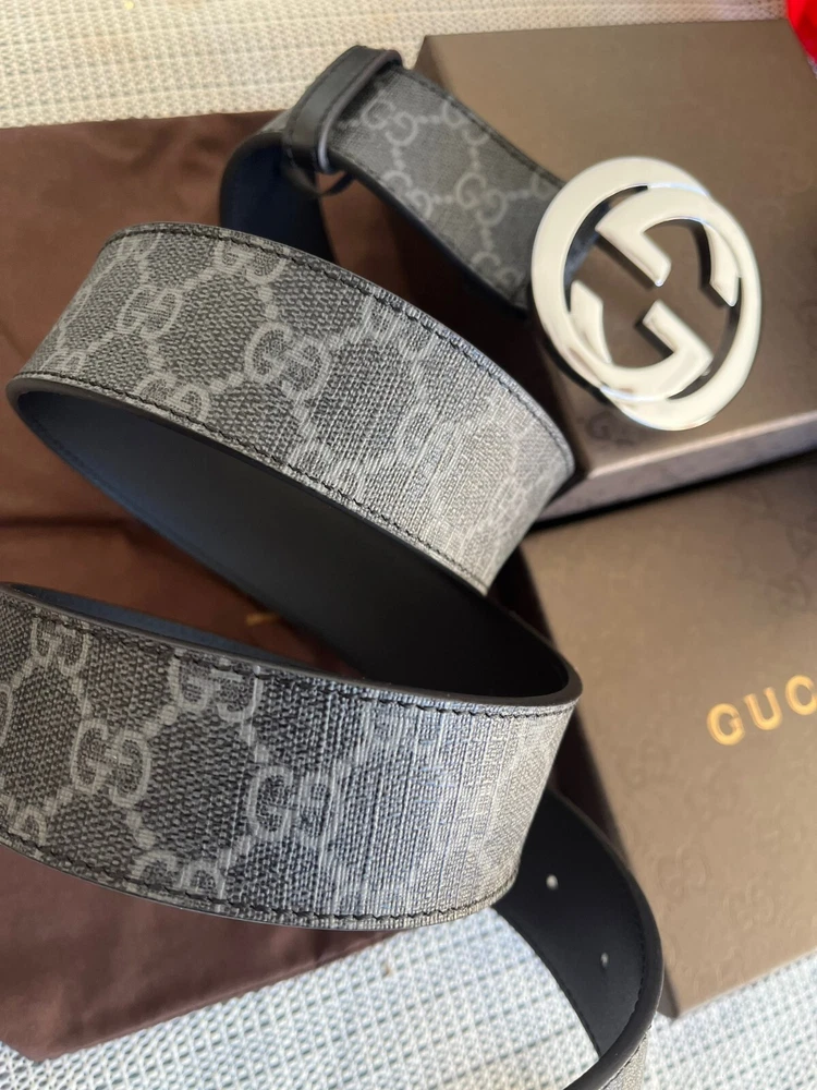 Gucci Men's GG Monogram Supreme Black/Gray Leather Belt Size 115cm, 40-42 waist, in Excellent Condition like NEW, Comes with BOX & DUST BAG.