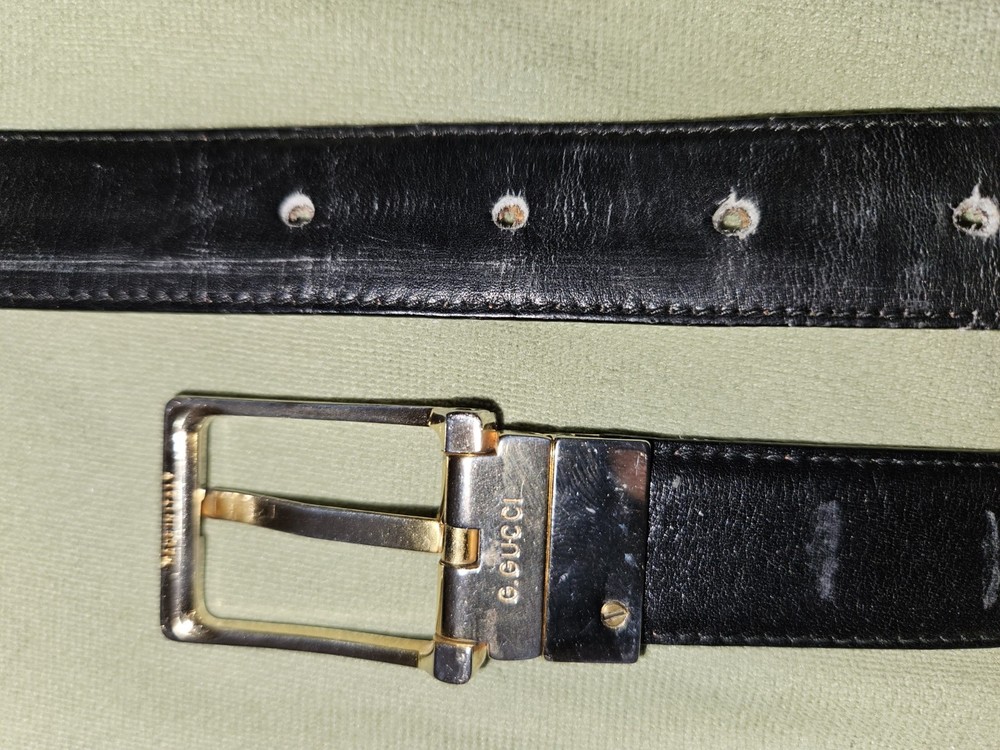 This Gucci vintage belt is a rare find, measuring 38 inches in length and made of black leather from Italy. The classic solid design features a buckle accent, adding a touch of sophistication to any outfit. With its timeless appeal and high-quality craftsmanship, this belt is a stylish accessory for any fashion-forward woman looking to elevate her wardrobe with a touch of luxury.
