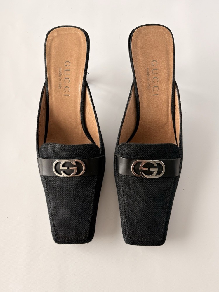 Gucci womens mules. Size 6B EU 37. Textile and leather. Heel height 8 cm / 3,15 in. Made in Italy. Condition: very good. Open to your offers Check description and photos very attentively Add your phone number to the shipping info Worldwide delivery 7-25 days. No retuns. If your need any other information about postcage, measurements, photos etc. please contact me. I will be glad to help You!