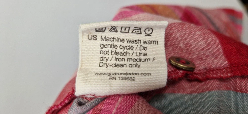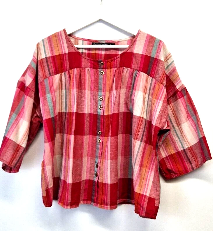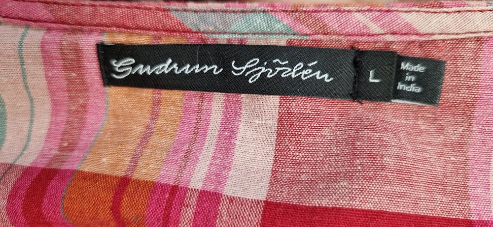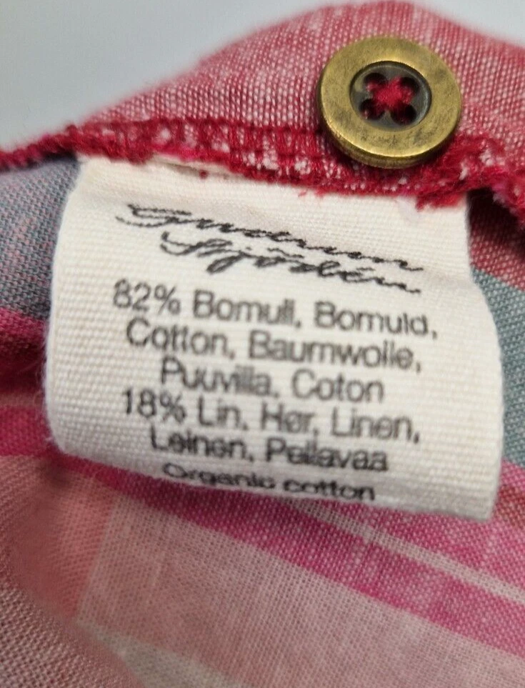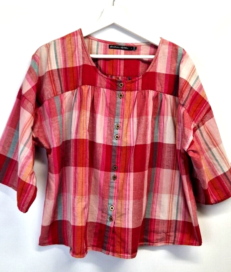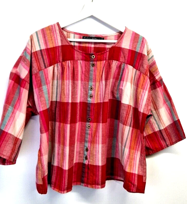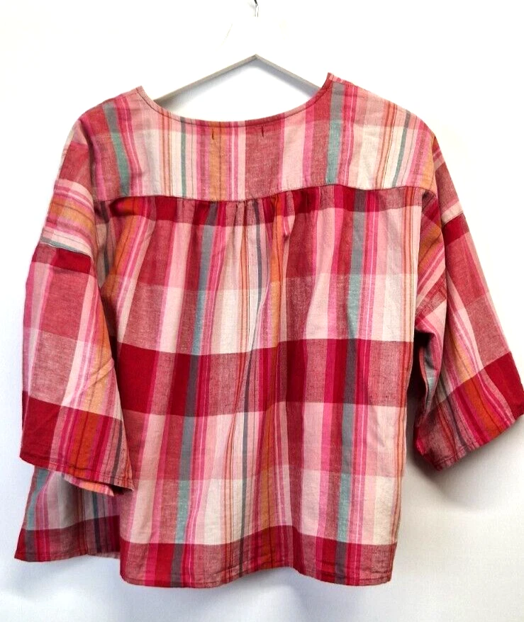 Style: Cropped Closure: Button Colour: Red Fit: Regular Occasion: Business, Casual, Party/Cocktail, Travel Department: Women Sleeve Type: Kimono Sleeve Size: L Size Type: Regular Accents: Button Country/Region of Manufacture: Unknown Theme: Art, Designer Character: boho Sleeve Length: Short Sleeve Fabric Type: Satin Brand: gudrun Sjoden Pattern: Plaid Season: Autumn, Spring, Summer Neckline: Round Neck Seller Notes: “VERY GOOD condition! No holes, damager, stains or flaws !” Type: Button-Up Material: Cotton, Linen Features: All Seasons, Limited Edition, Oversized Vintage: No