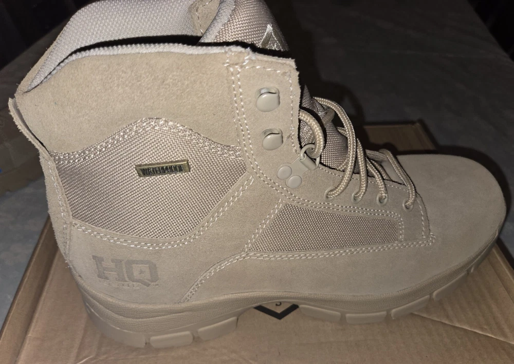 These are Guide Gear HQ 6 Inch Desert Boots in beige, size 11M. They feature a solid pattern, drawstring closure, genuine leather upper, and a military & weaponry theme. The boots are designed for men and have a medium width. Made in China by Guide Gear, these boots are perfect for outdoor activities or casual wear. PLEASE SEE PICTURES ANY QUESTIONS PLEASE ASK.
