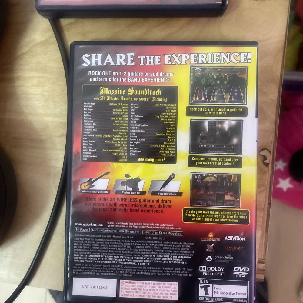 For sale: an essential starter pack for guitar hero. Everything is in overall great condition. The reverb bar is a little loose and there is something rattling in the guitar but it functions perfectly. The games are all CIB and in great shape. One game case has a small crack on the side of the case. Thanks for looking.