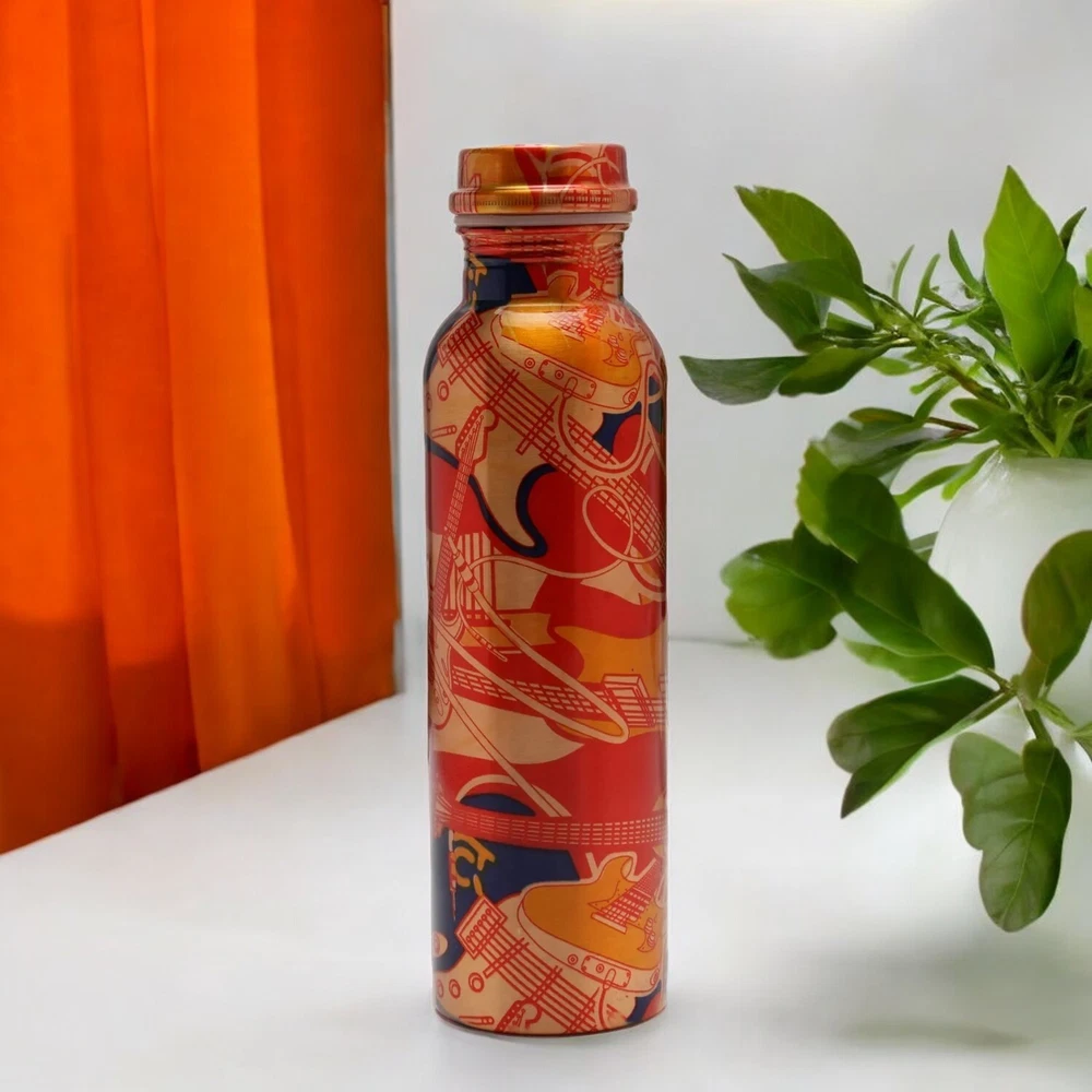 Guitar Print Pure Copper Water Bottle 1000ml Ayurveda Health Benefits Leak Proof Elevate your hydration game with our beautifully designed Guitar Print Copper Water Bottle. Stay stylish and healthy on the go. 1000ml Capacity: Perfect for Ayurveda Health Benefits 1000ml Generous Capacity Ample volume for sustaining your hydration needs throughout the day. Ayurveda Ayurvedic Compatibility Complements Ayurvedic health practices for holistic well-being. Copper Material: Known for its Health Benefits Antimicrobial Copper has natural antimicrobial properties, promoting a healthier lifestyle. Enhanced Taste Enjoy the refreshing taste of water stored in high-quality copper. Durable Build Long-lasting and reliable material for sustained usage. Leak Proof: No Spills or Messes 1 Secure Sealing Tightly sealed design ensures no leaks, even when tilted. 2 Mess-free Say goodbye to accidental spills and messy mishaps. Easy to Clean: Simple Maintenance Simple Maintenance Sustainable: Reusable and Eco-Friendly Reusable Reduce plastic waste by using a durable, reusable water bottle. Eco-Friendly Contribute to a greener environment with a sustainable choice. Perfect Gift: For Guitar Lovers and Health Enthusiasts Stylish Design An ideal gift for those who appreciate music and style. Health Conscious For the wellness-focused, a thoughtful and unique present. Order Now: Get Your Guitar Print Copper Water Bottle Today! 1 Key Features: Material: Crafted from Pure Copper, featuring a Silicone Seal for Leak-Proof Assurance. Health Benefits: Copper slows down aging and supports melanin production, enhancing pigmentation in eyes, hair, and skin. Lightweight: Easy to carry, perfect for travel, sports, yoga, office, or home use. Color: Multicolour Capacity: Approximately 1000ml Type: Copper Bottle Volume-950 ML, Weight-260 grams, Height-10.8" inches, Width- 2.8" Inches Shipping Information: π¦ Dispatch Time: Your selected item will be dispatched within 2 business days from the date of your order for prompt processing. π Delivery Timeframe: Estimated delivery time is within 1 to 2 weeks from the dispatch date, inclusive of shipping and potential customs processing. π Delivery Address: Ensure accuracy and completeness of the provided delivery address to avoid delays or issues. π Contact Us: For any inquiries or assistance with tracking your order, reach out to our customer support team. We're here to ensure a seamless shopping experience. π Connect with Us: Stay updated on the latest updates, promotions, and creative inspirations by connecting with us on social media. Thank you for choosing "Health Wellness" Happy Shopping! πΏ π