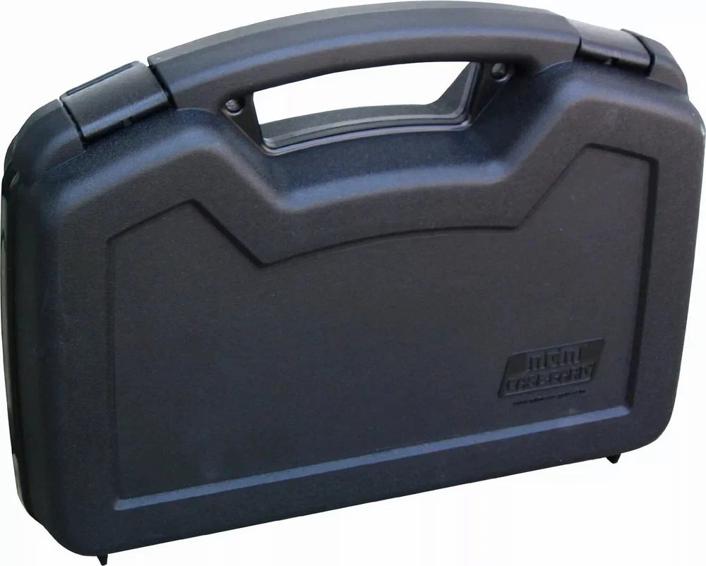MTM Single Handgun Case for 6-Inch Revolvers (Black) Keep your firearm safe and secure with the MTM Single Handgun Case . Ideal for automatics and scoped revolvers with barrels up to 6 inches, this durable case offers excellent protection. Key Features: Outside Dimensions: 13.1" x 9.7" x 3.2"; Inside Dimensions: 12.5" x 8.1" x 3.0" For Revolvers & Automatics with 6-Inch Barrels or Less Snap Latch for secure closure Comfortable, Large Handle for easy carrying Rugged Polypropylene Construction with a textured finish for scratch resistance Thick Foam Padding for added protection Padlockable with double padlock tabs for extra security Room for Trigger Lock (not included) Family-Owned Since 1968 – MTM is known for its high-quality, innovative designs. Made to last and built for your peace of mind. Perfect for: Storing and transporting your handgun securely.