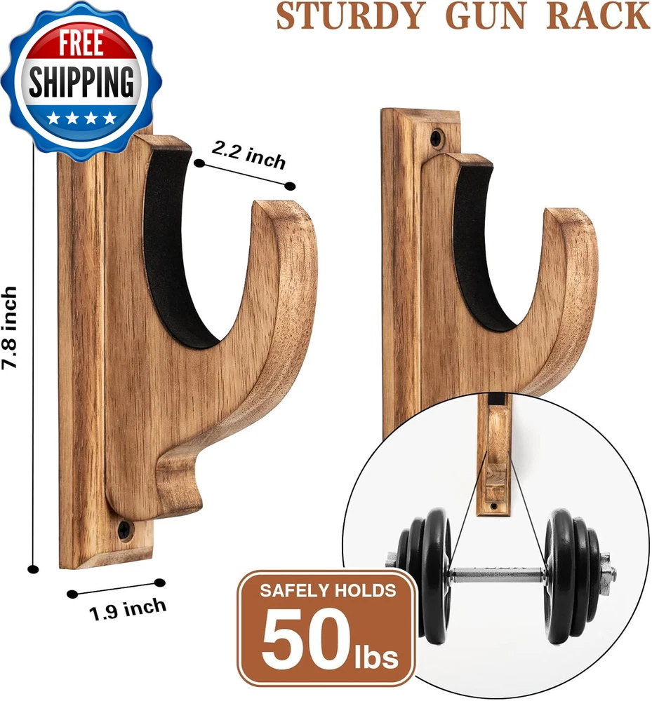 Gun Rack Wall Mount, Real Wood Shotgun & Rifle Wall Mount Holder Display for Sword Bow Firearm, Vintage Gun Holder Hangers for Gun Safe as Gifts for Men Rubber Imported Practical Gun Racks for Wall: Gun which could protect your family in emergencies. If you keep them all in safe cabinet, when you detect an emergency, you have no time to access them. So a practical rifle wall mount rack is must-have accessory to protect your family Vintage Design: Natural wood combine with victoria style design, elegant and unique, better to decor your gun and wall. Mounted in bedroom, above the fireplace or hunting wall, it must be a beautiful focus Real Hardwood & Sturdy Construction: natural rubber wood and with scientific construction makes this shotgun wall mount holder more strong. Coverd with soft mat to prevent your gun from scratching and slipping Easy to Install: Come with all required hardware and insturctions. They take up little space, you can mount wherever you want. Convenient to display and store your gun Purchase with Confidence: We always stand by our porduct, any problem with our gun display holder will be solved through contact us. Your satisfaction is our priority Product Description Vintage Wood Wall Mounted Gun Rack, Gun Racks Hang & Display for Shotgun Rifle Sword Bow Real Hardwood: These gun holder hooks made of natural rubber wood, 50lb maximum weight can keep your gun well. Soft Mat: Covered with soft mat to prevent your gun from scratching and slipping. Broad Match: This gun rack is designed based on statistics. Broad match to all types of guns in market. Easy to Install: Directly screwed into walls to hang wherever you want it to like cabinet, closet, fireplace, bookshelf and etc. Include: Gun Rack Hook x 2 Screw x 4 Anchor x 4 Instruction x 1 Feature: Material: Rubber Wood Color: Vintage Walnut Size: 7.8x4.7x1.9 inch Vintage Design With the vision of the designer, the retro and beautiful shape structure is designed. Then, realized through the craftsmanship of a carpenter. Natural wood with a retro look, it will be a beautiful decoration wherever you mount. Mounted in bedroom, above the fireplace or hunting wall, it must be a beautiful focus. Part Number Gun Rack Wall Mount Style Gun Racks Item Dimensions LxWxH 7.8 x 1.9 x 4.7 inches Color Carbonized Brown (4 Pcs) Item Weight 2.2 Pounds Material solid-wood Suggested Users unisex Package Weight 1.03 Kilograms Sport Type Hunting Outer Material solid wood Size Pack of 4 Model Name Gun Rack for Wall Hand Orientation Ambidextrous Item Package Dimensions L x W x H 9.33 x 8.74 x 4.25 inches Included Components Gun Rack for Wall Shipping Fast shipping is very important for us. Our standard US shipping service is FREE. Your order will be shipped within 2-3 business days upon full payment received. Your order will be delivered within 2-3 business days after the handling time. We only ship to the confirmed PayPal address. We reserve the right to cancel any order for any reason at any time. We are not responsible for undeliverable addresses. Returns and payment We offer a 30 days return policy from checkout winning date. We allow only PayPal as payment method FeedBack Your feedback very important to us, after you get your package and you are satisfied with our service please leave us positive feedback If you have any problem with your order / any questions please before leave any type of feedback Please visit our eBay store to check out other items for sale! Thank you for shopping at our store.