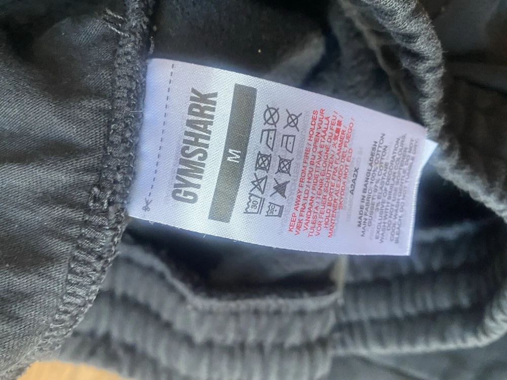 These Gymshark sweatpants are men's size medium in gray. They feature a drawstring closure and are made of a polyester, cotton, and cotton blend fabric. The sweatpants have a blended fabric type and a 30-inch inseam. They are suitable for activities like gym training, cross-training, and running, with an athletic fit for a comfortable workout experience.30" waist 30" inseam super comfortable