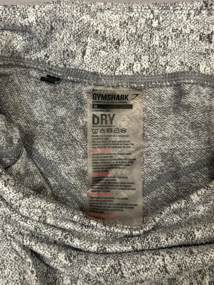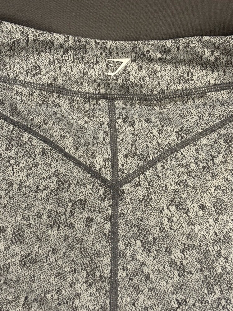 These Gymshark women's leggings in size medium are designed for activewear workouts. They are gray in color, made of a blended fabric, and feature an elastic waist and stretch material for comfort. The leggings have a skinny ankle fit and are suitable for various activities like running, weightlifting, yoga, and more. The Gymshark logo adds a touch of athleisure style to the design. No signs of wear- like new- no pilling