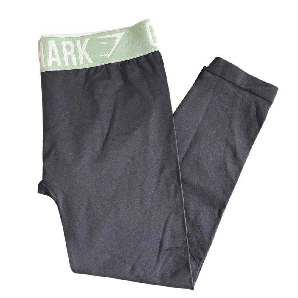 The Fit Seamless Cropped Leggings have been engineered with a seamless knit to provide a liberated range of movement and assured support. Available in gorgeous colourways, these seamless gym leggings are a guaranteed winner for your next cardio workout. Dark gray with a sea foam green and white waistband - Low rise fit - Seamless knit - Elasticated waistband - Jacquard logo - Silicone grip print - 86% Nylon, 14% Elastane NO SIZE TAG.. SEE MEASUREMENTS IN THE PHOTOS! Approximate FLAT LAY! Great condition! No flaws.