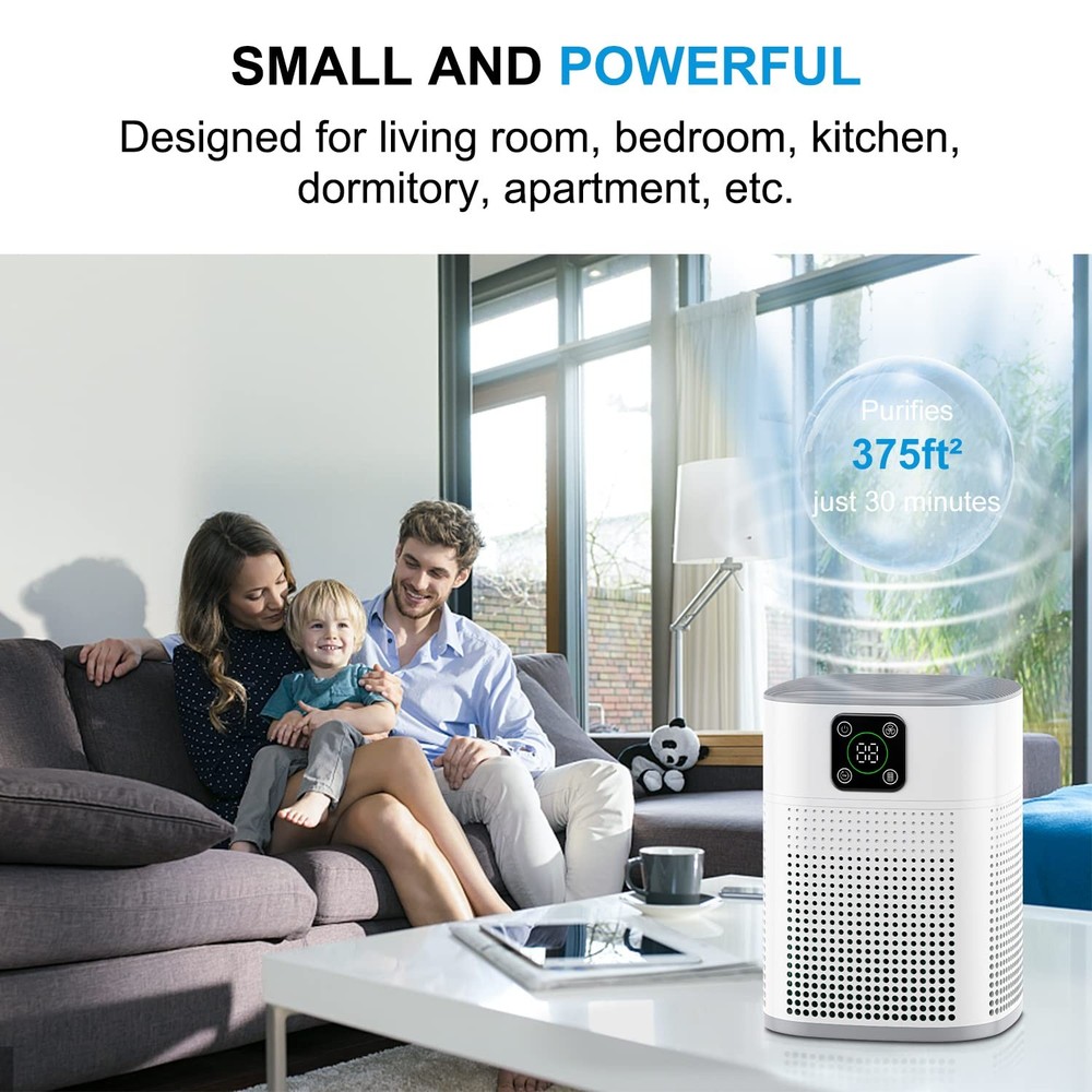 Air Purifiers for Bedroom, H13 HEPA Air Purifier for Home Large Room Product selling point: Save your money/quiet(24db)/H13 HEPA filter/lcd touch screen/three-layer filtration/pet friendly/portable and smart Smart and quiet In sleep mode, only 24db, the screen brightness will be automatically turned off, will not affect normal sleep Air Purifiers for Home and Air Purifiers for Pet-9 timer options (1H-9H) 🔥【H13 High Efficiency Purification】air purifiers adopts 360 surround air intake designs, H13 True HEPA filter with 3-Stage filtration, very suitable for pet owners, babies, children and the elderly, effectively improving indoor air quality(✅NOTE:REPLACEMENT FILTER:B0BHVPQHY8). 🔥【Portable & Smart Design】 Air purifiers for bedroom is portable and powerful, completely refreshed air in just 30 minutes in 600 sqft, and powerfully deliver clean air 90-120m³/h; Meanwhile our air cleaner is with LCD touch display, function with 3 Fan Speeds, 9 timer options, sleep mode, filter replacement reminder, You can easily operate it only by the indication icons on the screen. 🔥【Multifunctional & Flexible】Air purifiers for pet can adjust the required fan speed mode (Low/Medium/High) according to the size of rooms and and air quality. Under noise levels as low as 24dB. 9 timer options (1H-9H) allow you set the operating time, It will automatically shut off when the timer comes to an end. 🔥【Safe & Certified】The air purifier for home is 2024 upgraded air purifiers for bedrome home or offices. It is certified by UL, CE and FCC, and complies with the indoor cleaning equipment of the California Air Resources Board (CARB) and California Proposition 65 (CA65); It is with DC motor which can be applied to 100-240 volts, you can safe to use at USA. 🔥【What You Get】Air purifier*1, High efficiency composite filter*1, Power Adapter*1, Instruction manual*1. All products are backed with One year warranty and 24 hours after-sales service. Absolutely a perfect gift for you and your family.
