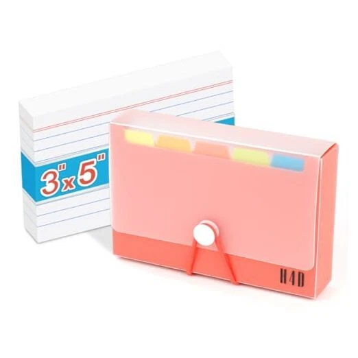 Return Policy Fast Delivery Trusted seller H4D 3x5 Index Card Case with 100 Heavyweight Ruled Index Cards and Dividers, Red Product Description Includes one hundred heavyweight ruled 3"x5" index cards and index card holder with dividers, one step purchase to save time and money This index card box holds up to one hundred 3"x5" index cards, also consider to organize notecards, flashcards, business cards and more Each index card holder box with five colored dividers and adhesive tabs label so you can organize your index cards by category Made of tear and wear resistant poly material, secure with a convenient elastic closure to keep your cards in place Overall measures 5.31"L x 3.55"W x 1.18"D, compact pack size is very convenient to carry around anyw as long as you want Shipping Returns Payment Shipping Shipping is FREE to all addresses other than APO/PO boxes in the lower 48 states. All our stock ships from US-based warehouses. Shipped via USPS or UPS (depending on location and package weight) Unless stated otherwise, all orders will ship within 24-72 hours of your payment being processed. Check our feedback to see the great reviews of FAST shipping we offer. Returns Seller does not accept returns Payment We currently accept payment via eBay managed payments only. Once payment is cleared, we will dispatch your shipment within 1-3 business days. Please refer to the "Shipping" tab for more information regarding shipping speed to your destination.