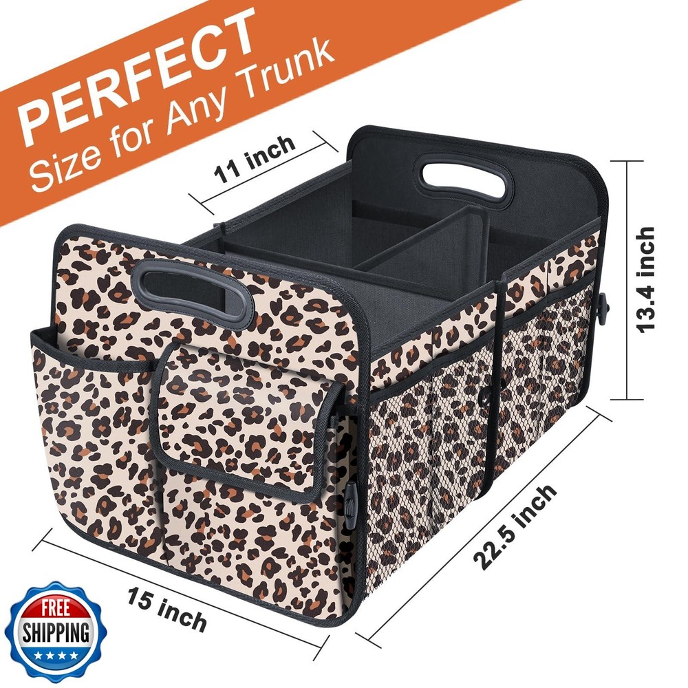 HABOPET Trunk Organizer, Collapsible Trunk Organizers and Storage, Car Accessories for Women and Men, Multi-Compartment Trunk Storage Organizer for SUV, Car, Mini-Van, Leopard Print Features Large Capacity: HABOPET Trunk Organizer has 72L capacity with 11 multiple storage pockets, and compartments with adjustable padded divider panels keep items upright. Great for groceries, sports gear, tools, emergency kits, and more. Foldable Car Organizer: Collapsible car organizers and storage space-saving design folds up when not in use, and easy to install and secure in car trunk, back seat, or floor. Multi-Purpos: This car storage organizer is a good home helper, it can be toy organizer, cloth organizer, book organizer, also can be a great partner as car accessories for men and women, it can be a car trunk organizer for suv,trucks, vans and more. Waterproof & Durable:Our car organizer trunk made of waterproof and durable oxford.The water-resistant exterior keeps your contents protected from wet gear.With its sturdy yet flexible construction, this car trunk organizer retains its shape when packed to the brim. Unique Design: The car accessories organizer with reinforced handles for easy carrying and protect your hand in safe, buttom with non-silp velcro strips can grip the surface of trunk to prevent sliding when drving. Shipping Free & Fast Shipping: We offer free shipping to most of the USA with a normal delivery time of 3-7 days. However, due to the current situation, additional delivery time (up to 3 weeks) may be required for some items. Alternative Carriers: We may use alternative carriers (e.g., USPS, FedEx, UPS) to ensure your package arrives safely and on time. Due to the use of multiple carriers, we are unable to provide a tracking number automatically. Handling Time: Orders are processed and shipped within 1-2 business days of receiving cleared payment. Shipping Restrictions: Shipping to Alaska, Hawaii, Puerto Rico, Guam, and other US territories may incur shipping charges or delivery restrictions. Please contact us before ordering, or your order can be refunded/cancelled. State Restrictions: Certain items may not be shipped to California due to state regulations. Contact for Tracking Updates: If you require tracking updates or have any concerns about the delivery of your order, please feel free to contact us, and we will be happy to assist you. Return Policy 30-Day Hassle-Free Returns: If you are not completely satisfied with your purchase, you can return the item for free within 30 days of receiving it for a full refund or exchange. Easy Return Process: Contact us, and we will provide you with a prepaid return shipping label and detailed instructions. No Restocking Fee: There are no restocking fees for returns. However, the buyer is responsible for return shipping costs if the return is not due to a seller"s error. Refund Processing: Refunds will be processed within 1 business day of receiving the returned item in its original condition. Feedback Your feedback is extremely important to us. We strive to provide the best products and customer service possible. If you are satisfied with your purchase, please take a moment to leave us a positive review. If you have any concerns or issues with your order, please contact us before leaving negative feedback. We are committed to resolving any problems and ensuring your satisfaction. Contact Us If you have any questions or concerns, please feel free to reach out to our customer support team. You can contact us through the eBay messaging system. We are available Monday to Friday, 9:00 am to 5:00 pm EST, and we will do our best to respond to your inquiry within 24 hours. Thank you for supporting our small family business!