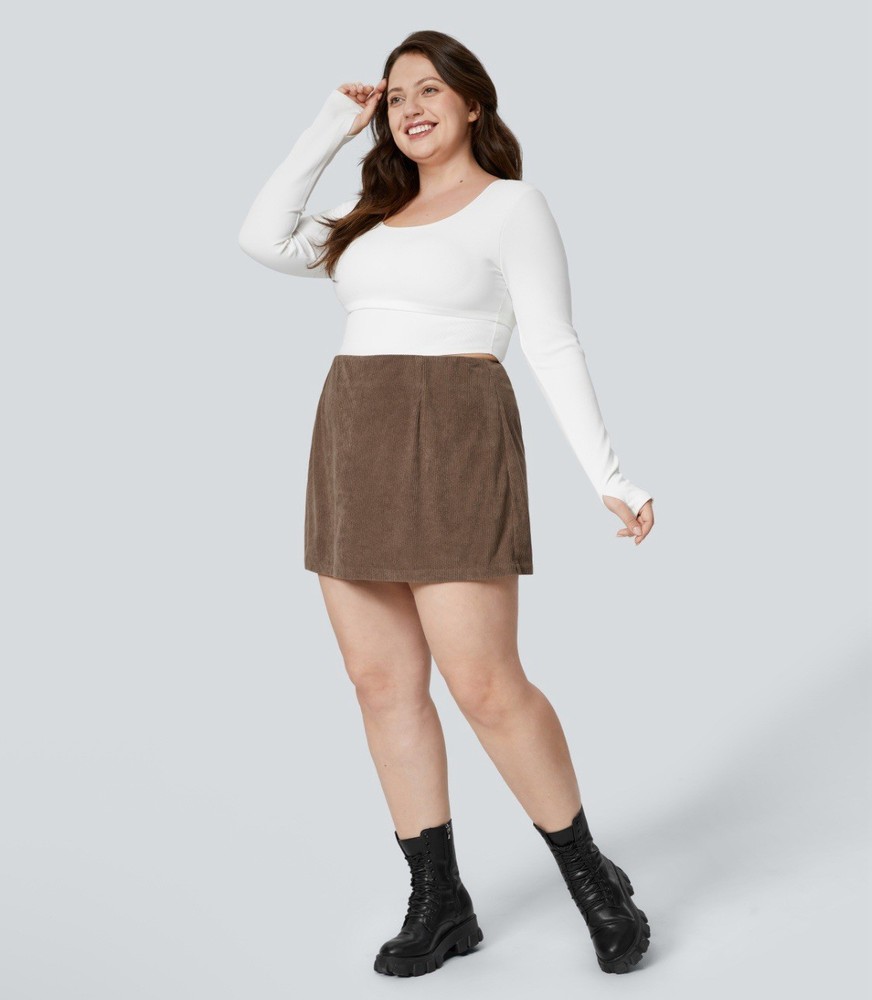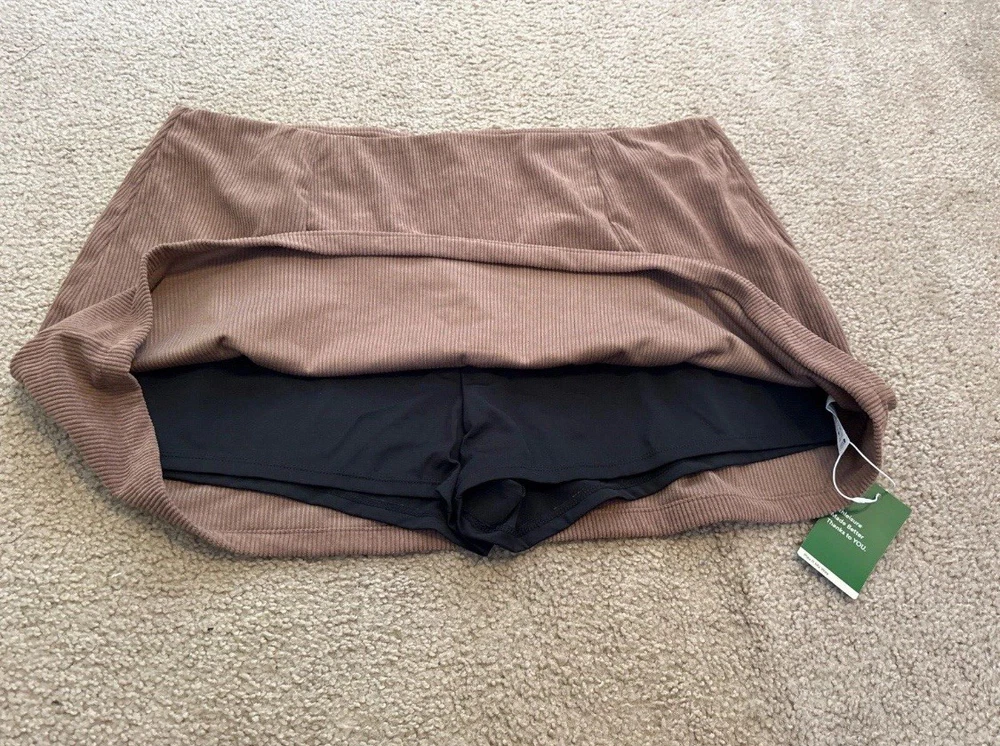 Brand new with tags and in the original poly bag! Elevate your style with this trendy HALARA 2-in-1 A Line Mini Corduroy Skirt. With its invisible zipper closure and cocoa brown color, this skirt is the perfect addition to your casual wardrobe. The high-rise and short length make it versatile for any occasion, from a day out with friends to a night on the town. Size 2X See photos for measurements. Smoke free home with super fast shipping!