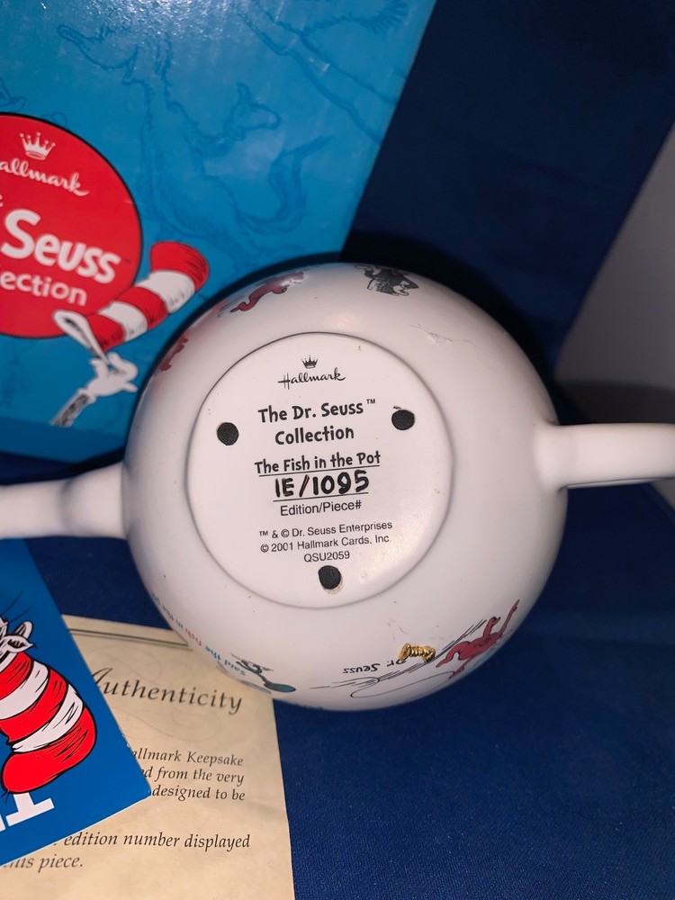 HALLMARK - DR. SEUSS FIGURINE COLLECTION CAT IN THE HAT - FISH IN POT Limited Edition # 1E/1095 (numbered on the bottom) This is a collection of the characters made famous be Theodore Geisel, aka Dr. Seuss. Made in 2000-2001 exclusively for the Hallmark Corp. It is in excellent condition and does not come with the original box. I am currently liquidating an entire business of collectibles, so please check out all my other items. I have many different brands & types. This item is in excellent condition, however, it does not have the original box. It will be packaged and shipped carefully to avoid any problems. I've got several more, so please check out my other auctions. I do offer combined shipping on items purchased within the same week.