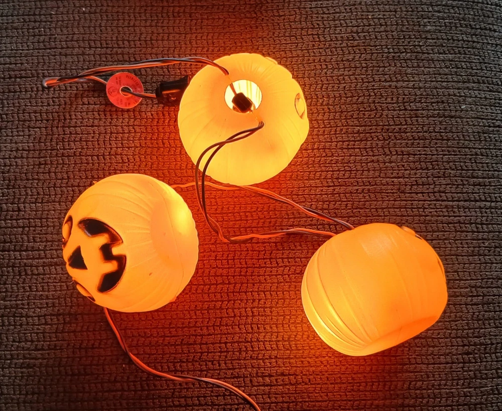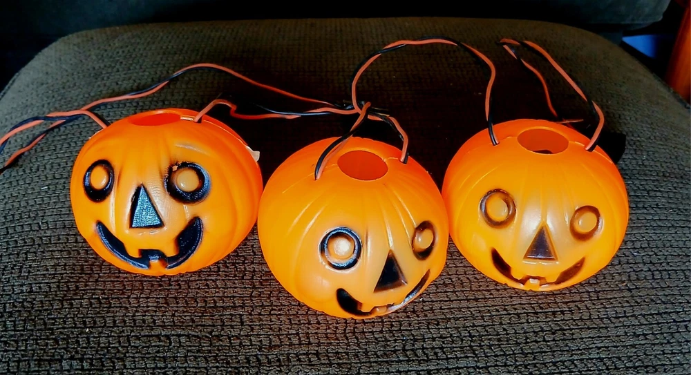 Up For Auction.... * Vintage 1960's string lights. * PEERLESS blowmold pumpkin lites with tag on line. * Really nice, solid color pumpkins with no damage. Electrical is solid and in working order. * This is a great vintage Halloween find! I will combine shipping on this item to save postage costs. Check the dropdown on postage to see the shipping services I offer. If you have any questions, please ask PRIOR to bidding. Sorry, no returns. All shipping costs are actual and not inflated.