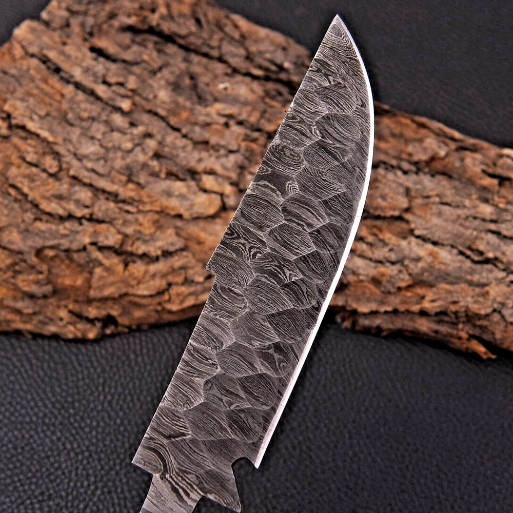 HAND FORGED DAMASCUS STEEL BLANK BLADE FOR SKINNING HUNTING KNIFE This superb design Blank Blade is hand forged. Blade of this knife has a nice file work and is made of 512 layers of 4340 stainless steel and 1075 high carbon steel and hardness 55-58 HRC . This robust Blank Blade is lab tested under intense conditions, the balance and shape of this Blank Blade ensures perfect grip. Overall Length: 8" Inches Damascus Design: Twist Pattern Layers: 512 Hardness: 55-58 HRC Warning: Keep fingers clear of blades Store away from children.