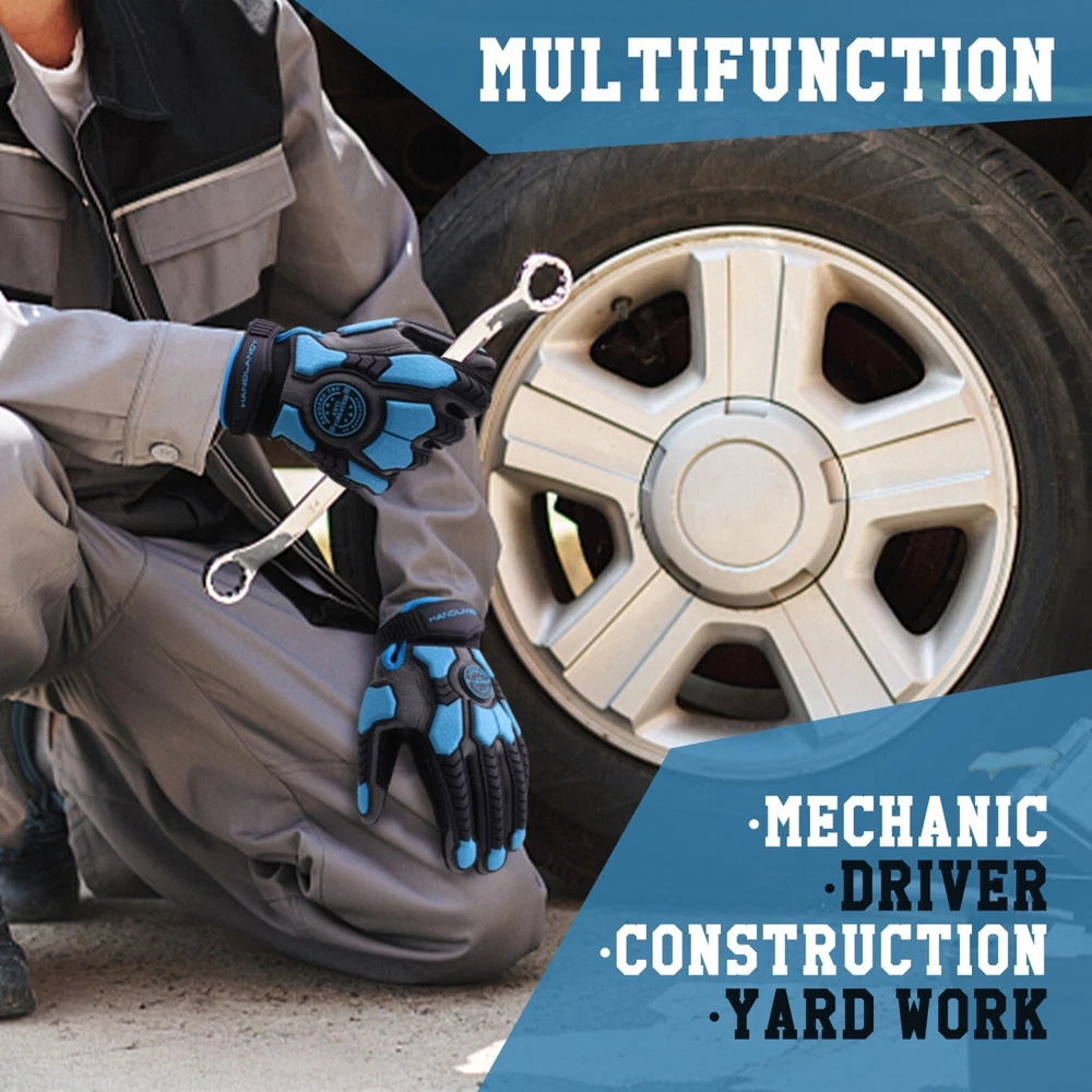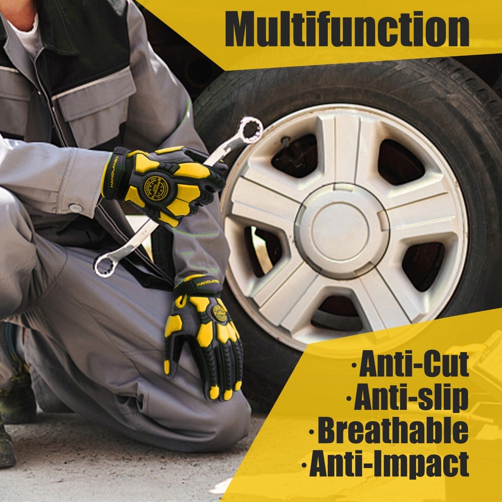 Cut Resistant & Impact Gloves - Premium Material: ANSI 6 (EN388:2016 cut level E) PVC palm with HPPE & steel wire liner fabric, tear & cut resistant safety work gloves, abrasion and durability. Back: Thermoplastic Rubber (TPR) knuckle and fingers, anti-shock and impact work gloves. Heavy Duty Work Gloves - Ergonomic hand protection design, Comfortable and flexible. Breathable spandex and mesh fabric, keep your hands cool. Reinforced saddle, extra protection between thumb and forefinger. Details - Touchscreen capable fingertips for smartphone control ; Adjustable Wrist - Protective work gloves wrist design with adjustable hook & loop closure for comfortable and secure fit. Multifunctional Work Gloves - Perfect Fit for Men & Women, our heavy duty Work Gloves suitable for Mechanic, Driver, Construction, Gardening, Landscaping, Warehouse, Power tools, glass handling, wood carving, metalwork.