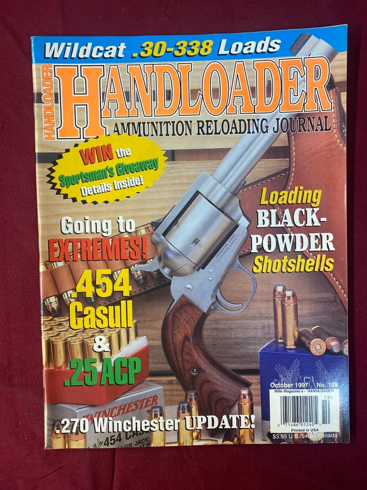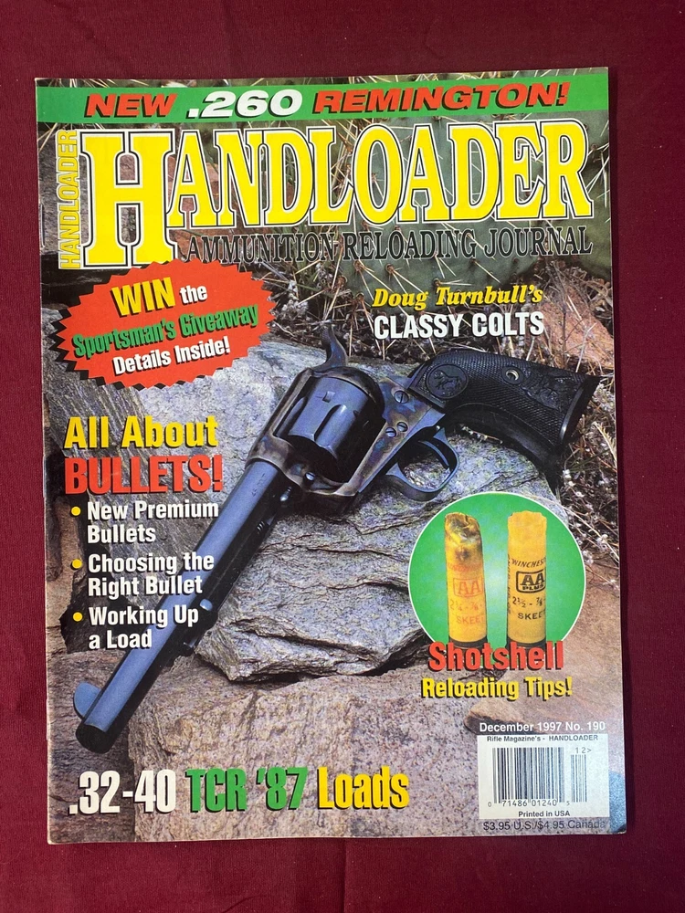 HANDLOADER The Journal of Ammunition Reloading MISC 1996-1998 ISSUES OCTOBER 1996 DECEMBER 1996 APRIL 1997 JUNE 1997 AUGUST 1997 OCTOBER 1997 DECEMBER 1997 FEBRUARY 1998 DECEMBER 1998 7 issues in all as shown in pictures.