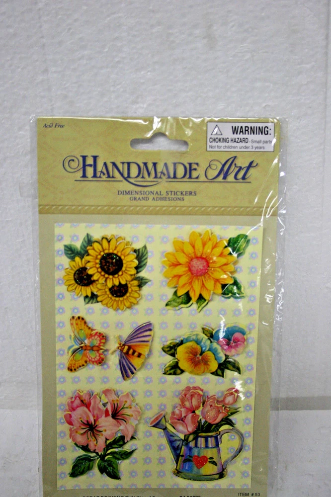 HANDMADE ART DIMENSIONAL STICKERS ACID FREE ITEM#: 53 FLOWERS AND TWO FLYING BUTTERFLIES AND OR MOTH VERY COLORFUL AND BEAUTIFUL PLEASE CHECK OUT OUR EBAY STORE FOR OTHER GREAT FINDS...