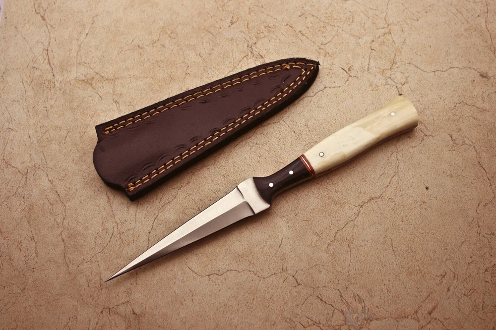 HANDMADE HIGH STSAINLESS STEEL BLADE ROSEWOOD HANDLE FIXED BLADE HUNTING KNIFE If you’re looking for a fixed blade knife that will be a reliable companion, This knife epitomizes the bold. The main qualities that make it great: sturdiness, sharpness, and looks. The ergonomic design is easy to hold and carry with the included leather sheath. Great for survivalists, tactical personnel, outdoors-men or anyone who appreciates fine craftsmanship and an amazing blade. The blade is high Stainless steel, double edged, and razor sharp. It's sturdy enough to last through even the harshest conditions. The handle is beautifully polished, with real rose wood grips. Designed to feel comfortable and natural in the hand. Even in different conditions, you'll feel confident that the knife will stay firmly within your grasp. Total Length: 9.5" Blade length: 5" Handle Length : 4.5" Blade Material: Stainless steel Blade Hardness: 50-58HRC on Rockwell scale Total Layers: 512 Handle Material: Pakka/rose Wood /Bone Sheath: Genuine Cowhide Leather We do sell wholesale, please contact us for special discounts on bulk orders. FEEDBACK POLICY: YOUR FEEDBACK IS VERY IMPORTANT FOR US, IF THEIR IS ANY KIND OF PROBLEM PLEASE GIVE US OPPORTUNITY TO SORT THE ISSUE