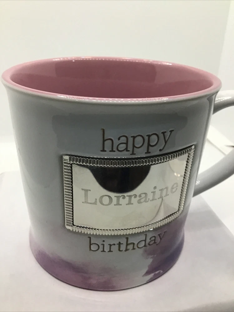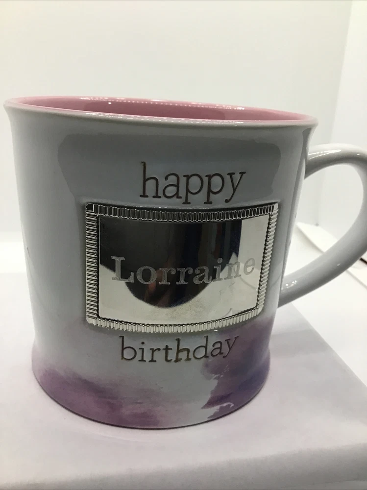 HAPPY BIRTHDAY LORRAINE COFFEE MUG. Coffee Mug Gift. Art Deco Print Mug.B165
