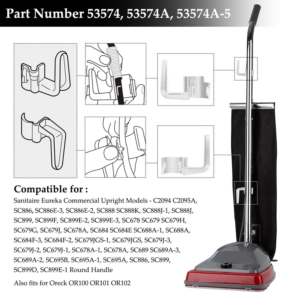 for Commercial Vacuum Cord Hook fit Eureka Sanitaire Oreck Kent Powrflite 3 SETS Type: Vacuum Cord Hook. Color: Beige. Material: Plastic. Application: Vacuum Cleaner. Simple attaching hook. Fits for Select Eureka Sanitaire models. For use with Eureka Sanitaire metal handle vacuums. Easily holds the weight of the power cord and prevents the cord from knots and damage. Every Product from HASMX will enjoy 30 days Money-back and 18-Months worry-free warranty. If you're not sure whether it fits your model, please email us-includes your Models and serial number. Note - This is an aftermarket replacement Parts. Any brand name is used solely for the purpose of demonstrating compatibility. This is Brand New – Unused Simple attaching hook for Eureka Sanitaire Oreck Kent Powrflite Vacuum Cleaners. For use with Eureka Sanitaire metal handle vacuums. Fits the following select for Sanitaire model 53574. Packing quantity Includes Three (3) Upper Cord Hooks and Three (3) Lower Cord Hooks as the picture shows. Easily holds the weight of the power cord and prevents the cord from knots and damage. Every Product from HASMX will enjoy 30 days Money-back and 18-Months worry-free warranty.