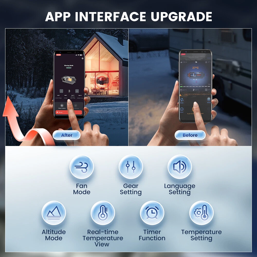 Similar Items Description Features: New model 2024,With bluetooth App,remote control display is fully upgraded and more convenient to use - Calcifying liquid crystal - Heating can be applied to heat the cab of transport vehicles, vans, storage battery cars and all kinds of other vehicles. - Can remove frost from the window. - Ecological product, low emissions, low fuel consumption; exhaust emissions of heaters to meet the emission requirements of Euro IV engines. - Compact structure, easy to install. - Can disassemble to a new car when replacing the vehicle. - Technology Volatile, by ceramic ignition socket the fuel heating evaporates into gas, rapid ignition, complete combustion. - The use of advanced automatic control technology, with abnormal operating conditions reliable. - Fuel, electricity, temperature can be set arbitrarily. - May use diesel as fuel. - bluetooth app remote switch Specifications: Brand Hcalory Configuration fuel tank 10L Rated power 2KW Rated voltage 12V/24V universal bluetooth function YES Fuel consumption 0.04L/h~0.12L/h Remote control effective distance 100 meters Radiator working temperature -40~+50°C Operating temperature of oil pump -40~+40°C Color Blue Red(as shown) Shell Plastic Packaged included: 1 x Car heater 1 x LCD Digital switch 1 x Remote control 1 x Oil pump 1 x Fuel Tank 1 x Wind head 1 x Air Filter 1 x Oil filter 1 x Fixed plate 1 x Exhaust pipe 1 x Inlet air pipe 1 x Outlet air pipe 1 x Harness 1 set Screw accessory kit 1 x Tubing 1 x Oil pump clamp 1 x Fixed cable 1 x User Manual RAPID HEATING: HCALORY diesel heater has a built-in all-aluminium structure that combines high efficiency heating with rapid heat transfer and warming, achieving rapid heating (100 degrees) in less than 10 minutes. The 2KW adjustable power heater can be adjusted to suit your needs and is ideal for indoor, outdoor, camping, cars, boats, small houses. ENERGY CONSERVATION: The 12-volt diesel heaters features a precision low-noise fuel pump. Fuel consumption is reduced to 0.04 gal/hour-0.12 gal/hour, maximising fuel performance and reducing energy waste. Equipped with an extra-large 10L fuel tank for 10 hours of continuous heating and 12-33 hours of driving to ensure continuous heating. MULTIPLE CONTROL METHODS: Can be used in three ways: Bluetooth remote control (30 metres), remote control and LCD panel control; The smart APP can also provide timing function, thermostatic control, temperature adjustment other functions.It can provide you with continuous heating and save time. WIDE APPLICATION AREA: The diesel air heater is equipped with plateau mode for high altitude 18,045 ft, it will automatically adjust to different altitudes and heat up quickly. 12-24V DC 110V/220V AC heater is suitable for any usage scenario such as caravan, carpentry room, camping or lorry SAFETY PROTECTIONS: The new 2024 upgraded motherboard is safer and provides short circuit protection, reverse connection protection, over-voltage protection, over-heat protection (≥270 °C/518 °F), etc. It can be used safely in various environments such as cars, RVs, boats and indoors, warming you up for the whole winter. Note: 1. Please allow 0.5-1cm differences due to manual measurement. 2. Due to the light and screen difference, the item's color may be slightly different from the pictures. #divSKUDetail2 Detail Image Payment 1.We accept Payoneer、PayPal、Mastercard、VISA、Google Pay 、American Express etc. 2.All major credit cards are accepted through secure payment processor. 3.Payment must be received within 7 business days of auction closing. 4.We ship to your eBay or payment address. Please make sure your eBay and payment address is correct before you pay. Shipping 1.We ship to your eBay or Paypal address. Please make sure your eBay and Paypal address is correct before you pay. 2.Items will be shipped within 1-3 business day when we received payment. 3.Delivery time depends on destination and other factors;