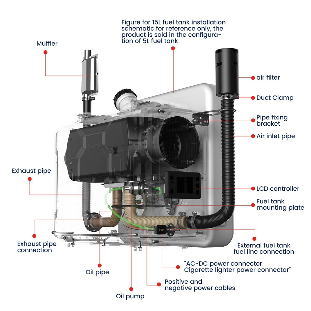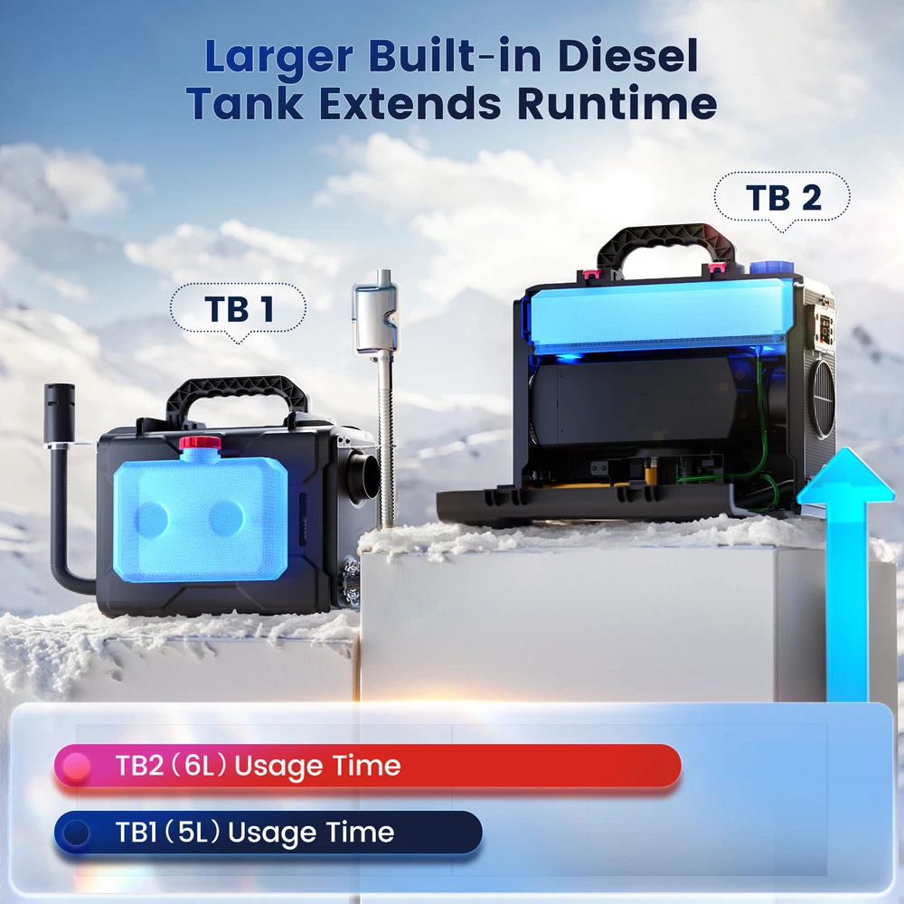 Similar Items Description TB1-Knob Type [Without AC Adapter+5 L Fuel Tank] Features: 1. Suitable for all 12V Universal diesel vehicles; it can be used for cab heating of various vehicles such as trucks, vans, battery cars, etc., to eliminate window frost; 2. 5KW power adjustable to meet different needs; 3. Easy to Carry & Install Designed as a suitcase, can be easy to carry in outdoors. Compact structure, easy to install and disassemble. 5. Environmental products, low emissions, low fuel consumption; 6. The volatilization technology, the fuel is heated and evaporated into gas through the ceramic spark plug, the ignition is fast and the combustion is sufficient; 7. bluetooth app remote switch (optional); 8.The use of advanced automatic control technology, with abnormal operating conditions reliable; 9.Technology Volatile, by ceramic ignition socket the fuel heating evaporates into gas, rapid ignition, complete combustion; 10.Fuel, electricity, temperature can be set arbitrarily. Smarter - Download the "airheaterble" App, available for iOS and Android devices, which enables user to remotely control t he heater via Bluetooth. You can preheat and defrost the outdoor vehicle in advance without leaving your home Specifications: Brand Hcalory Configuration fuel tank 5L Rated power 5KW Rated voltage 12V bluetooth function YES Fuel consumption 0.1L/h~0.35L/h Remote control effective distance 50-100 meters Radiator working temperature -40~+50°C Operating temperature of oil pump -40~+40°C Color Black Shell Plastic Packaged included: 1 x Car heater 1 x Remote control 1 x Silencer 1 x Tubing 1 x Harness 1 x Wind head 1 x Air Filter 1 x Exhaust pipe 1 x Inlet air pipe 1 x Outlet air pipe 1 x Fuel Tank 1 set Screw accessory kit TB2-2024 Pro Ungrade [With Ac Adanter+6L Fuel Tank] Features: 1. Enhanced heating efficiency system: Experience enhanced heating efficiency with our advanced aluminum diesel air heater. The improved aluminum body is wider and longer, allowing for rapid warmth as it raises air temperature by 18-36°F. This innovative design reduces exhaust gas temperature by 90 -180°F, ensuring a comfortable environment even in the coldest conditions. Enlarged smoke vents facilitate better combustion, minimizing smoke and carbon buildup. With automatic temperature control adjustment, this system effectively addresses overheating issues, while its fuel consumption rate of just 0.036-0.1 gallons per hour promotes significant fuel savings. 2. Compact Toolbox Design: This portable diesel heater comes in a compact, toolbox-style design with a built-in 6L fuel tank and handle, making it easy to transport, install, and maintain. Ideal for RVs, trucks, and outdoor adventures, its space-saving design ensures hassle-free operation wherever you go. 3. Dual Power Options: This versatile diesel air heater supports both 12V/24V DC and 110V AC power sources, making it suitable for a wide range of vehicles and locations, whether on the road or at home. 4. Smart App Control: Take full control of your heating experience with our Bluetooth app, allowing you to adjust temperatures, set timers, and activate altitude mode for optimal performance at high elevations. Enjoy the convenience of managing your heater directly from your smartphone. 5. bluetooth app remote switch , Smarter - Download the "QR code" App( From the instruction manual ), available for iOS and Android devices, which enables user to remotely control the heater via Bluetooth 6.Comprehensive Safety Features: Engineered with multiple safety protections, including over-heating, short-circuit, reverse connection, and over-voltage safeguards, this portable diesel heater ensures safe and reliable operation in any environment. 7. Certified & Safe:Complies with all local, state, and federal safety regulations. Equipped with safeguard safety functions such as automatic shutdown and overload protection for a worry-free experience. Warning: This heater must be exhausted to the outdoors to prevent CO poisoning. Rest easy knowing your heater is designed with your safety in mind, allowing you to focus on your adventures. Specifications: Brand HCALORY Type All in one Diesel Heater Model TB2-2024 Upgraded Color Black Configuration fuel tank 6L Rated power 5KW-8KW Rated voltage 12V/24V & 110V Fuel consumption 0.14 liters - 0.41 liters/hour Remote control effective distance 50-100 meters Radiator working temperature -40~+50°C Operating temperature of oil pump -40~+40°C Packaged included: 1 x Air Heater Host 1 x LCD Display switch 1x Remote control 1 x Intake pipe 1 x Air Outlet pipe 1 x Exhaust pipe 1x Vent 1 x Air Filter 1x Silencer 1 set Accessories set 1 x AC power adapter(US Plug) 1 x DC battery power cable 1 x User manual Note: 1. Please allow 0.5-1cm differences due to manual measurement. 2. Due to the light and screen difference, the item's color may be slightly different from the pictures. #divSKUDetail2 Detail Image Payment 1.We accept Payoneer、PayPal、Mastercard、VISA、Google Pay 、American Express etc. 2.All major credit cards are accepted through secure payment processor. 3.Payment must be received within 7 business days of auction closing. 4.We ship to your eBay or payment address. Please make sure your eBay and payment address is correct before you pay. Shipping 1.We ship to your eBay or Paypal address. Please make sure your eBay and Paypal address is correct before you pay. 2.Items will be shipped within 1-3 business day when we received payment. 3.Delivery time depends on destination and other factors;