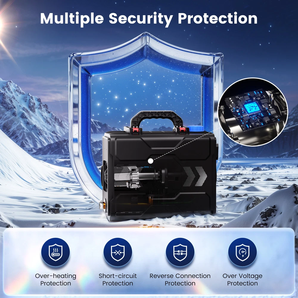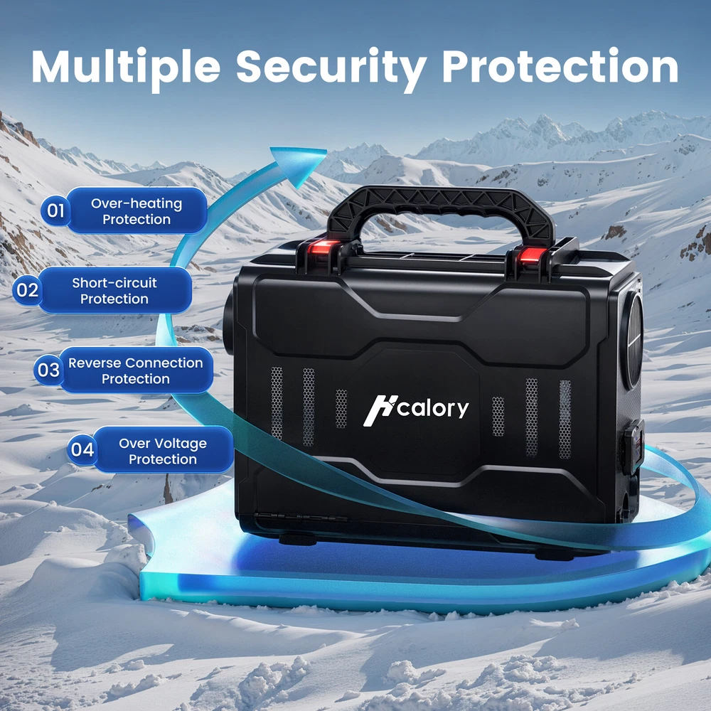 Similar Items Description Features: 1. Enhanced heating efficiency system: Experience enhanced heating efficiency with our advanced aluminum diesel air heater. The improved aluminum body is wider and longer, allowing for rapid warmth as it raises air temperature by 18-36°F. This innovative design reduces exhaust gas temperature by 90 -180°F, ensuring a comfortable environment even in the coldest conditions. Enlarged smoke vents facilitate better combustion, minimizing smoke and carbon buildup. With automatic temperature control adjustment, this system effectively addresses overheating issues, while its fuel consumption rate of just 0.036-0.1 gallons per hour promotes significant fuel savings. 2. Compact Toolbox Design: This portable diesel heater comes in a compact, toolbox-style design with a built-in 6L fuel tank and handle, making it easy to transport, install, and maintain. Ideal for RVs, trucks, and outdoor adventures, its space-saving design ensures hassle-free operation wherever you go. 3. Dual Power Options: This versatile diesel air heater supports both 12V/24V DC and 110V AC power sources, making it suitable for a wide range of vehicles and locations, whether on the road or at home. 4. Smart App Control: Take full control of your heating experience with our Bluetooth app, allowing you to adjust temperatures, set timers, and activate altitude mode for optimal performance at high elevations. Enjoy the convenience of managing your heater directly from your smartphone. 5. bluetooth app remote switch , Smarter - Download the "Hcalory" App( From the instruction manual ), available for iOS and Android devices, which enables user to remotely control the heater via Bluetooth 6.Comprehensive Safety Features: Engineered with multiple safety protections, including over-heating, short-circuit, reverse connection, and over-voltage safeguards, this portable diesel heater ensures safe and reliable operation in any environment. 7. Certified & Safe:Complies with all local, state, and federal safety regulations. Equipped with safeguard safety functions such as automatic shutdown and overload protection for a worry-free experience. Warning: This heater must be exhausted to the outdoors to prevent CO poisoning. Rest easy knowing your heater is designed with your safety in mind, allowing you to focus on your adventures. TB2: Specifications: Brand HCALORY Type All in one Diesel Heater Model TB2-2024 Upgraded Color Black Configuration fuel tank 6L Rated power 5KW-8KW Rated voltage 12V/24V & 110V Fuel consumption 0.14 liters - 0.41 liters/hour Remote control effective distance 50-100 meters Radiator working temperature -40~+50°C Operating temperature of oil pump -40~+40°C Packaged included: 1 x Air Heater Host 1 x LCD Display switch 1x Remote control 1 x Intake pipe 1 x Air Outlet pipe 1 x Exhaust pipe 1x Vent 1 x Air Filter 1x Silencer 1 set Accessories set 1 x AC power adapter(US Plug) 1 x DC battery power cable 1 x User manual Note: 1. Please allow 0.5-1cm differences due to manual measurement. 2. Due to the light and screen difference, the item's color may be slightly different from the pictures. TB1 SE: Specifications: Brand HCALORY Type All in one Diesel Heater Model TB1 SE-2024 Upgraded Color Black Configuration fuel tank 5L Rated power 8KW Rated voltage 12V/24V & 110V Fuel consumption 0.14 liters - 0.41 liters/hour Remote control effective distance 50-100 meters Radiator working temperature -40~+50°C Operating temperature of oil pump -40~+40°C Packaged included: 1 x Air Heater Host 1 x LCD Display switch 1x Remote control 1 x Intake pipe 1 x Air Outlet pipe 1 x Exhaust pipe 1x Vent 1 x Air Filter 1x Silencer 1 set Accessories set 1 x AC power adapter(US Plug) 1 x DC battery power cable 1 x User manual Note: 1. Please allow 0.5-1cm differences due to manual measurement. 2. Due to the light and screen difference, the item's color may be slightly different from the pictures. #divSKUDetail2 Detail Image Payment 1.We accept Payoneer、PayPal、Mastercard、VISA、Google Pay 、American Express etc. 2.All major credit cards are accepted through secure payment processor. 3.Payment must be received within 7 business days of auction closing. 4.We ship to your eBay or payment address. Please make sure your eBay and payment address is correct before you pay. Shipping 1.We ship to your eBay or Paypal address. Please make sure your eBay and Paypal address is correct before you pay. 2.Items will be shipped within 1-3 business day when we received payment. 3.Delivery time depends on destination and other factors;